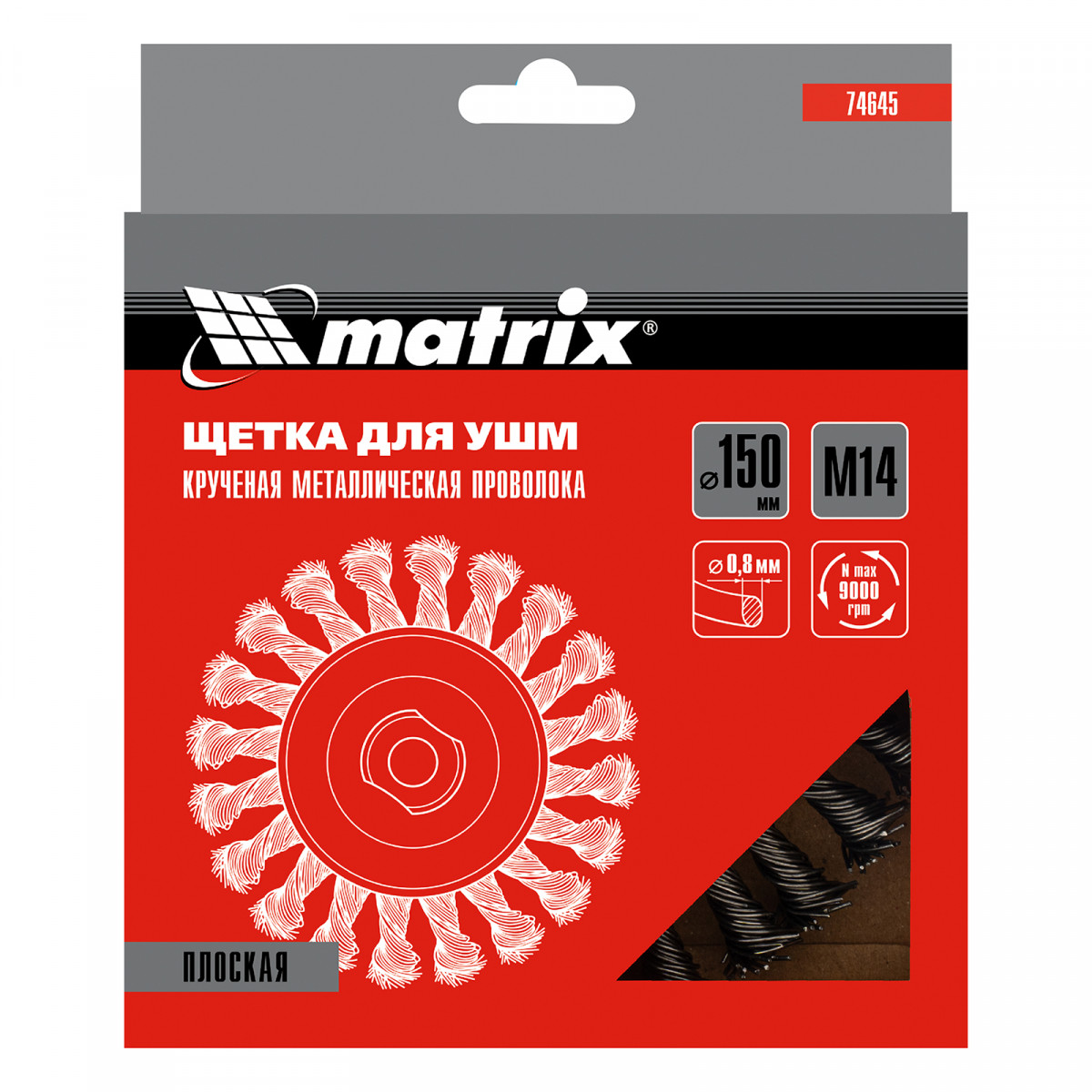 Щетка для УШМ 150 мм, М14, плоская, крученая проволока 0.8 мм Matrix