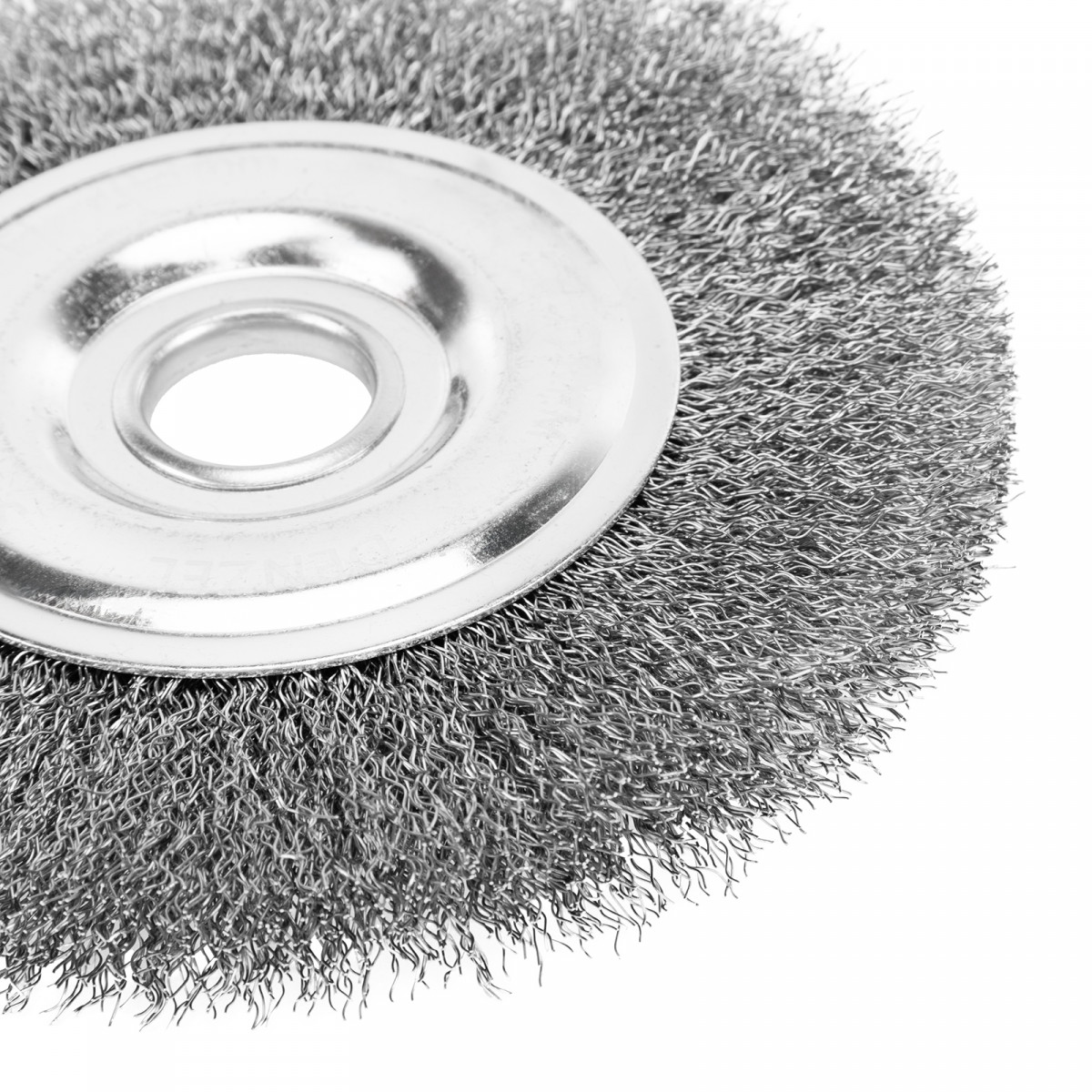 Щетка для УШМ, 150 мм, "Плоская", витая нержавеющая проволока 0.3 мм, посадка 22.2 мм Denzel