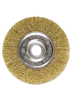 Щетка изготовлена из стальной проволоки. Латунное покрытие. Применяется для очистки металлических поверхностей от ржавчины и грязи в щадящем режиме. Тип посадки – М14.