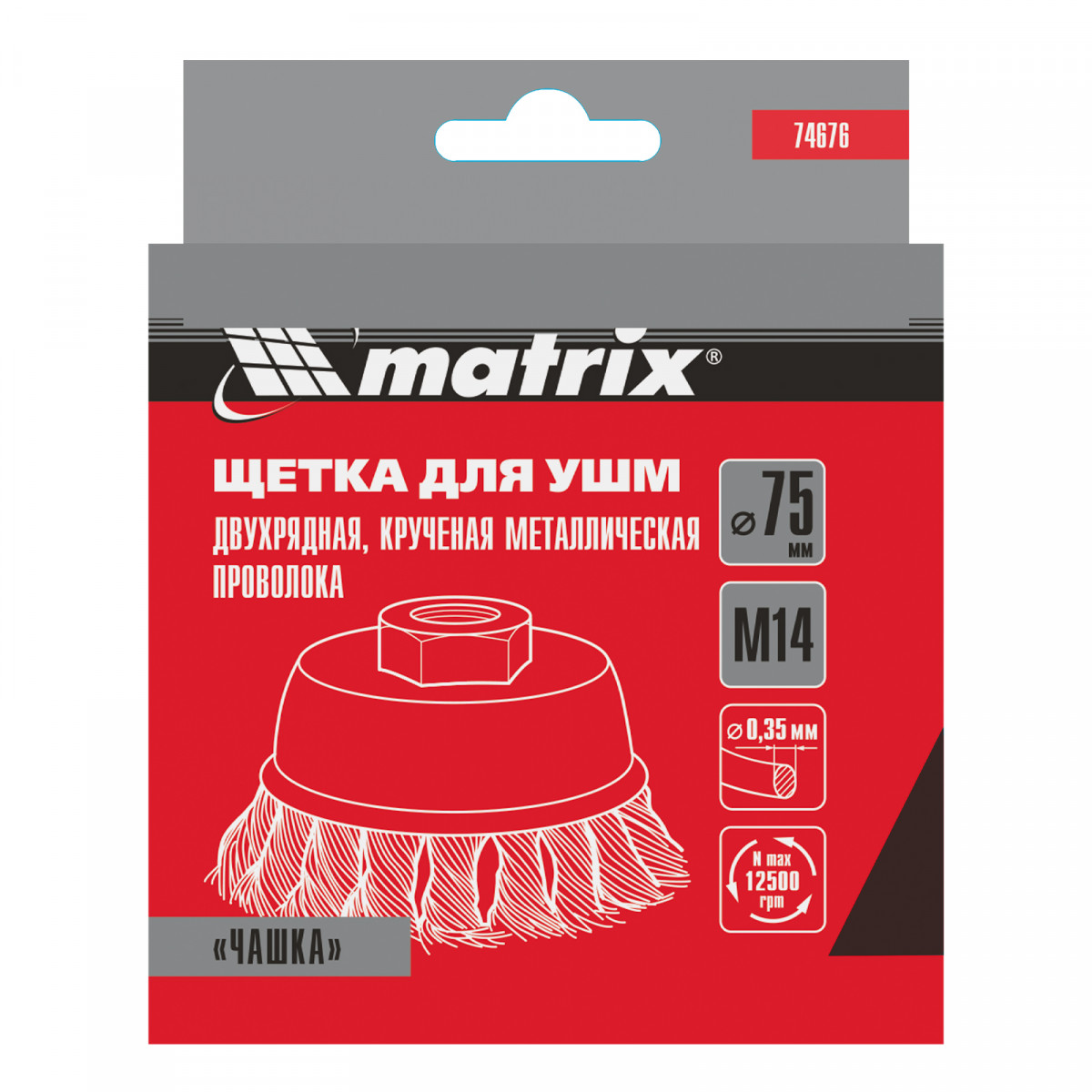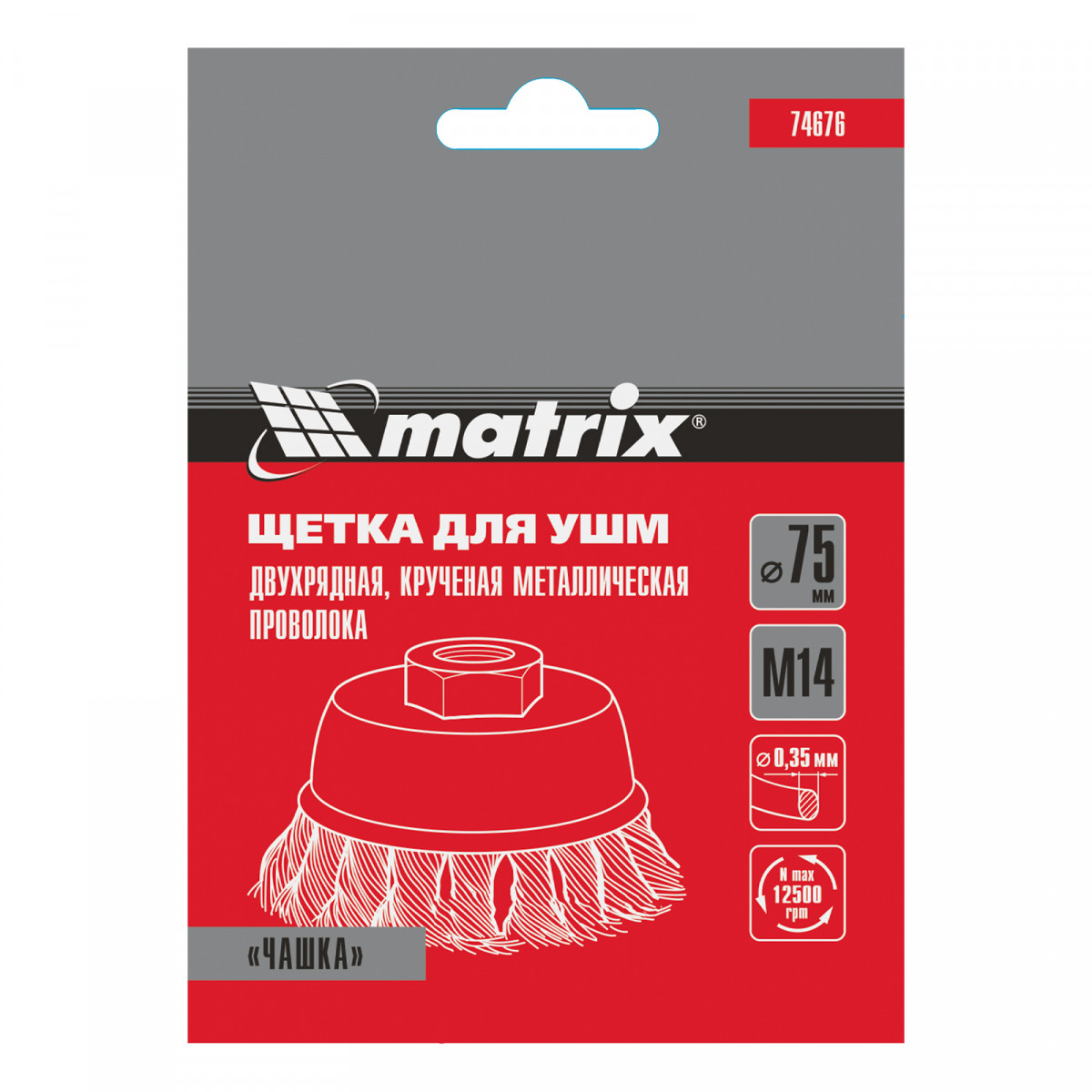Щетка для УШМ, 75 мм, М14, "чашка", двухрядная, крученая проволока 0.35 мм Matrix