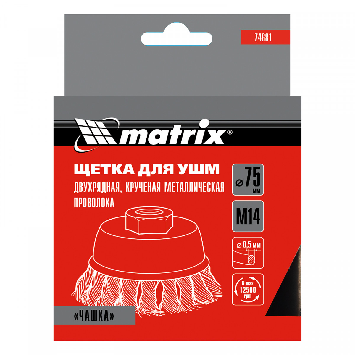 Двухрядная щетка Matrix «Чашка» 74681 диаметром 75 мм, с щетиной из крученой проволоки толщиной 0,5 мм, устанавливается на вал углошлифовальной машины с помощью гайки М14. Рекомендованная максимальная скорость вращения — до 12500 об/мин. Оснастка оптимальна для грубой (черновой) обработки: снятия старого слоя лакокрасочного покрытия и ржавчины, удаления загрязнений, зачистки сварных швов. Эффективно справляется с зачисткой больших поверхностей, подходит для выполнения работ повышенной сложности.