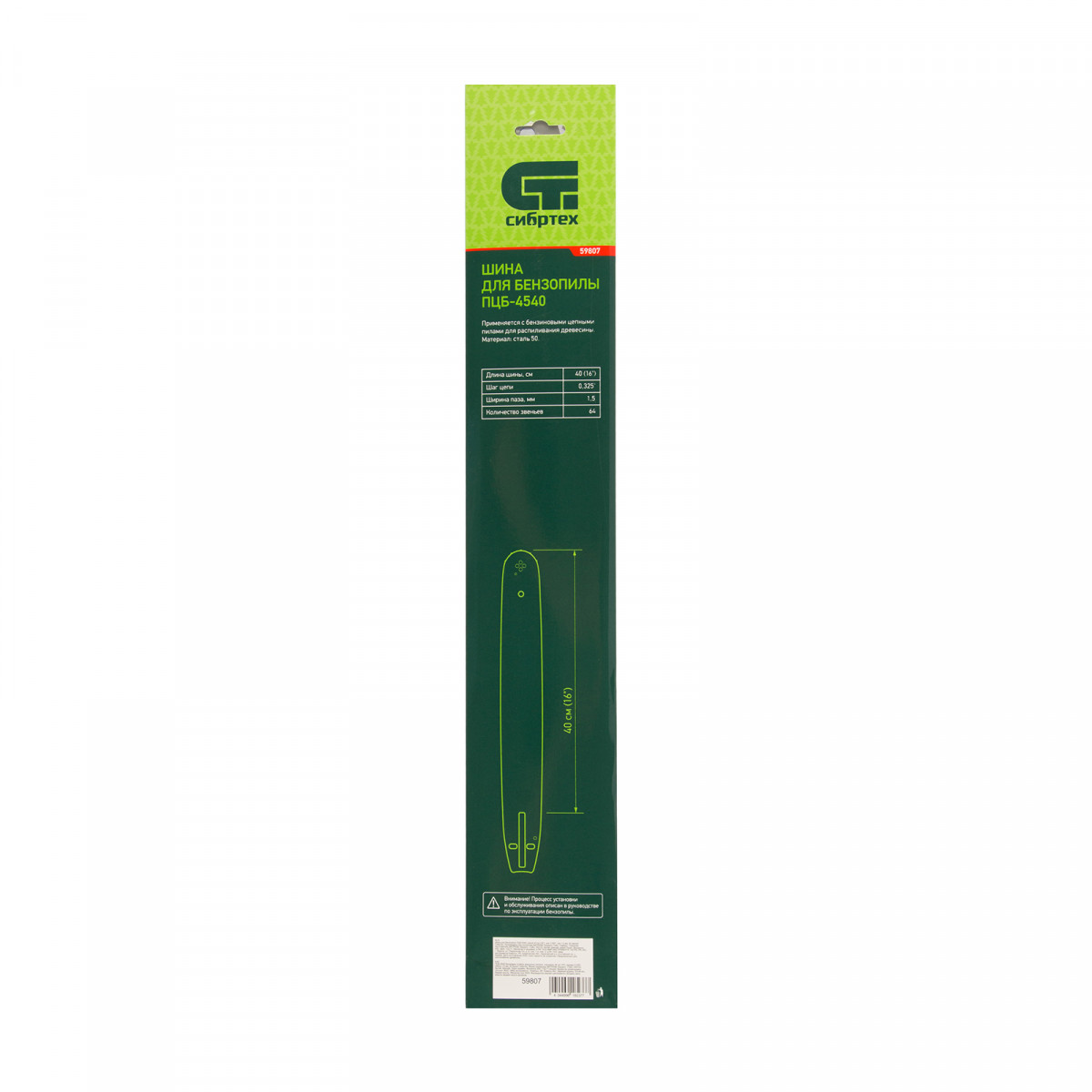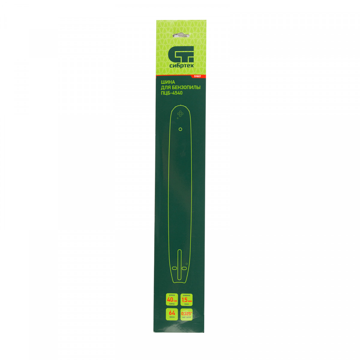 Пильная шина Сибртех 59807 используется в качестве сменной фурнитуры с цепной бензиновой пилой Сибртех ПЦБ-4540. Длина 40 см (16") позволяет использовать шину для работ на дачном участке, в походах, на охоте и рыбалке. На шину надевается цепь с 64 звеньями (шаг 0,325″, паз 1,5 мм), которых достаточно для формирования ровного среза на древесине мягкой и средней твердости.