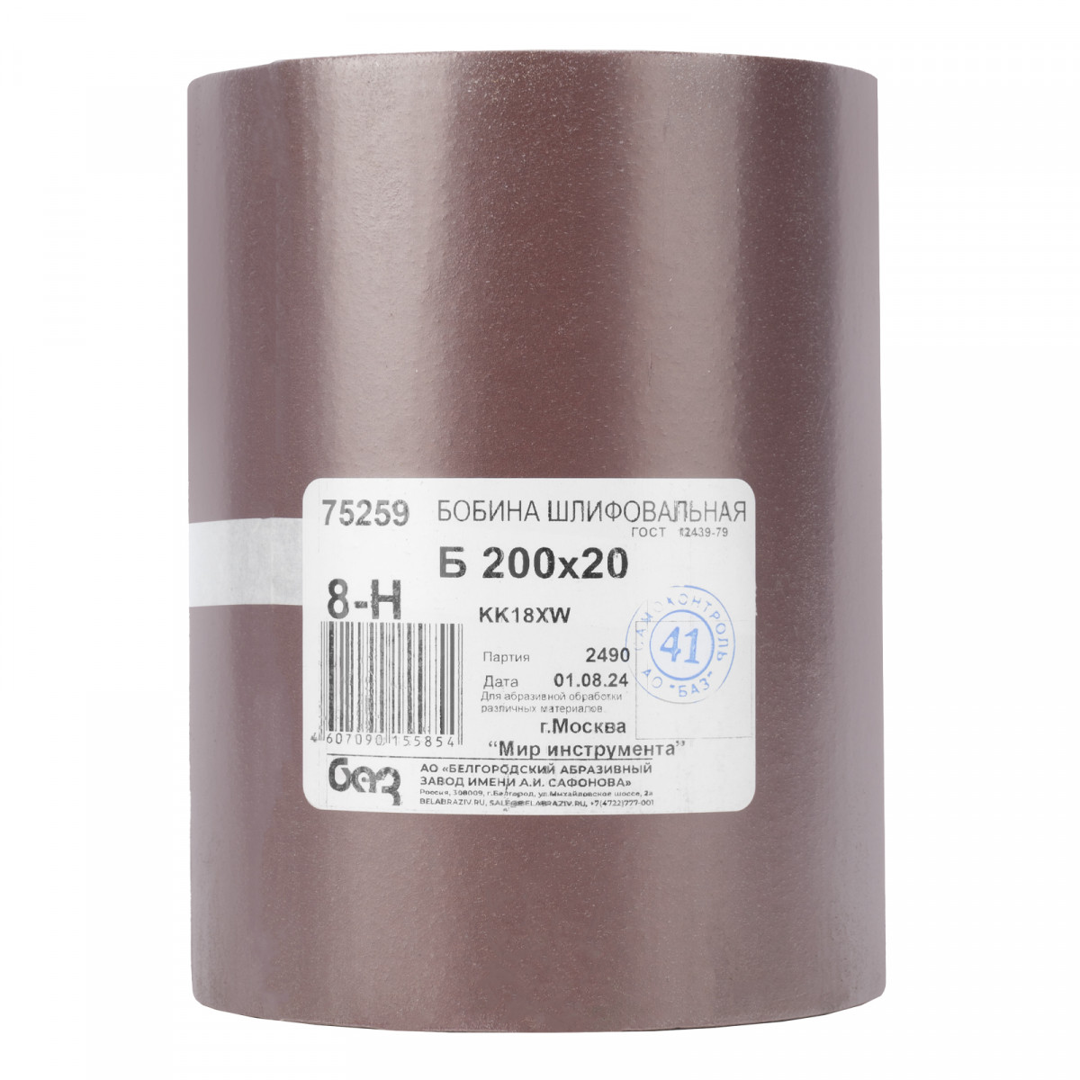 Водостойкая шкурка на тканевой основе БАЗ 75259 серии KK18XW, с зернистостью 8H (P 150) и размером 200 мм x 20 м, поставляется на бобине и предназначена для работ с древесиной, металлом, пластиком и другими материалами. Позволяет подготовить поверхность к нанесению грунта, краски и элементов декора, провести финишную шлифовку, снять тонкий слой краски или лака. Абразив Р 150 с частицами размером 80-100 мкм эффективно устраняет царапины, оставшиеся от более крупнозернистых шкурок.