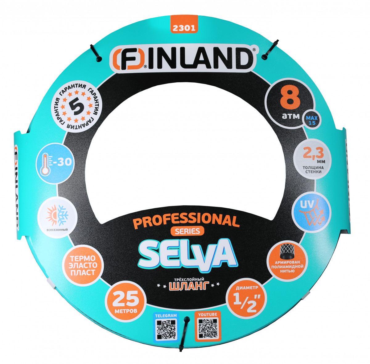 Шланг поливочный 1/2" 25 м ТЭП 3-слойный FINLAND SELVA