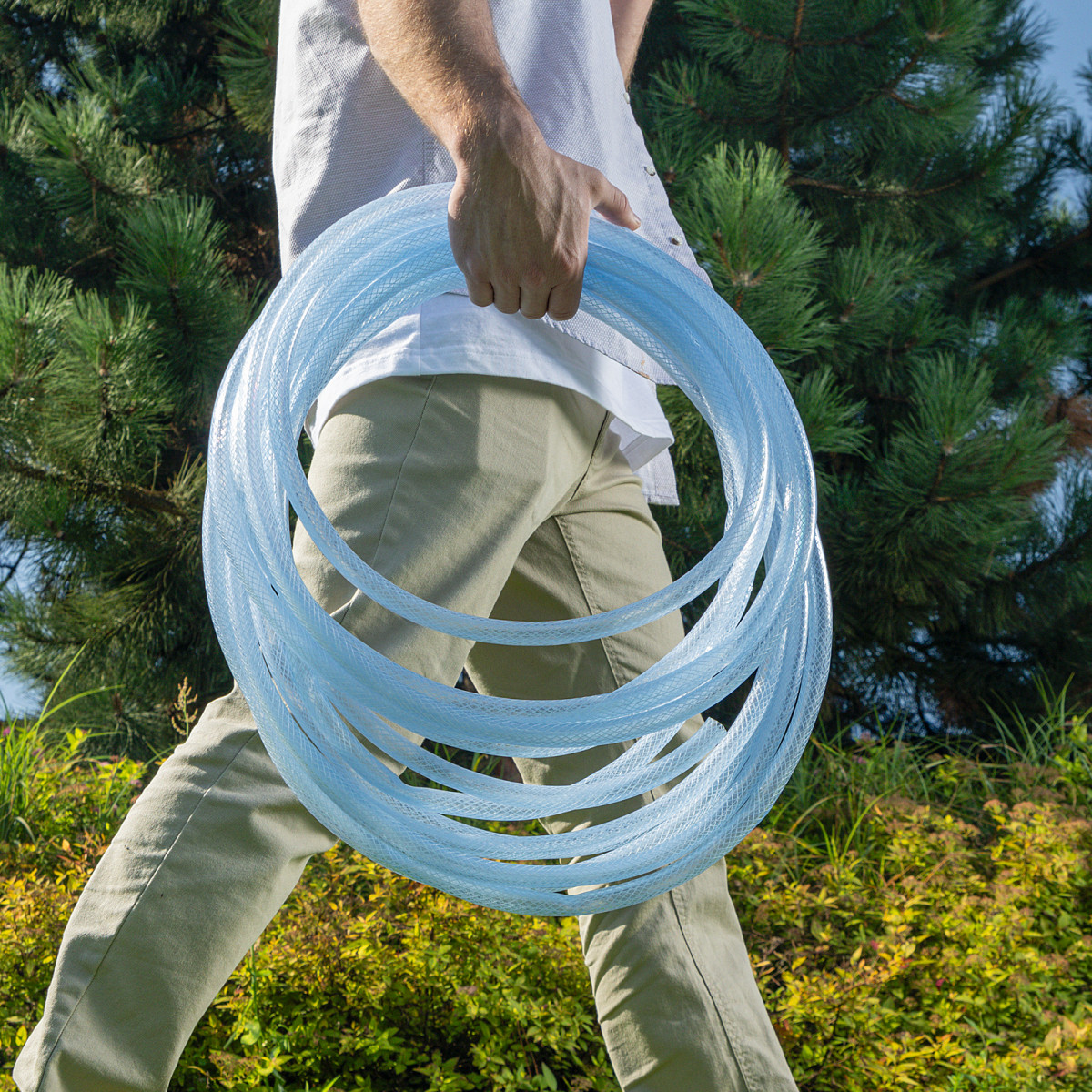 • Повышенная прочность — шланг изготовлен из поливинилхлорида (ПВХ) и армирован нитью из полиэстера.