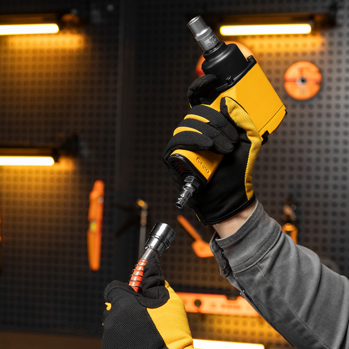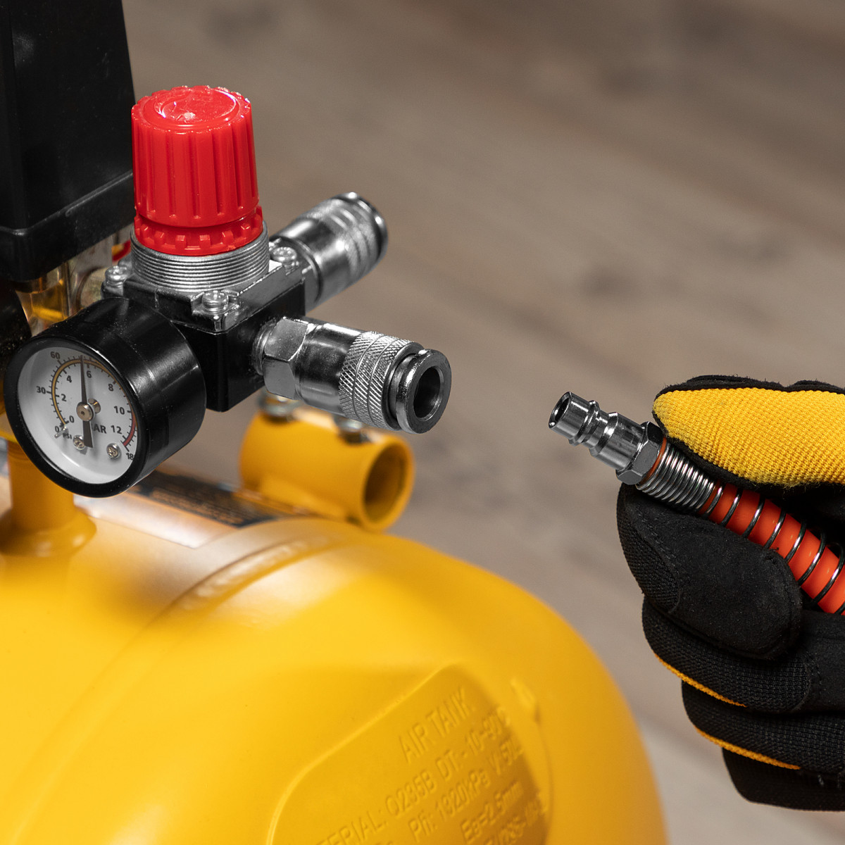 • Комфортная работа — быстросъемные соединения «рапид» позволяют легко подключать рукав к компрессору и экономят время при смене пневмоинструментов.