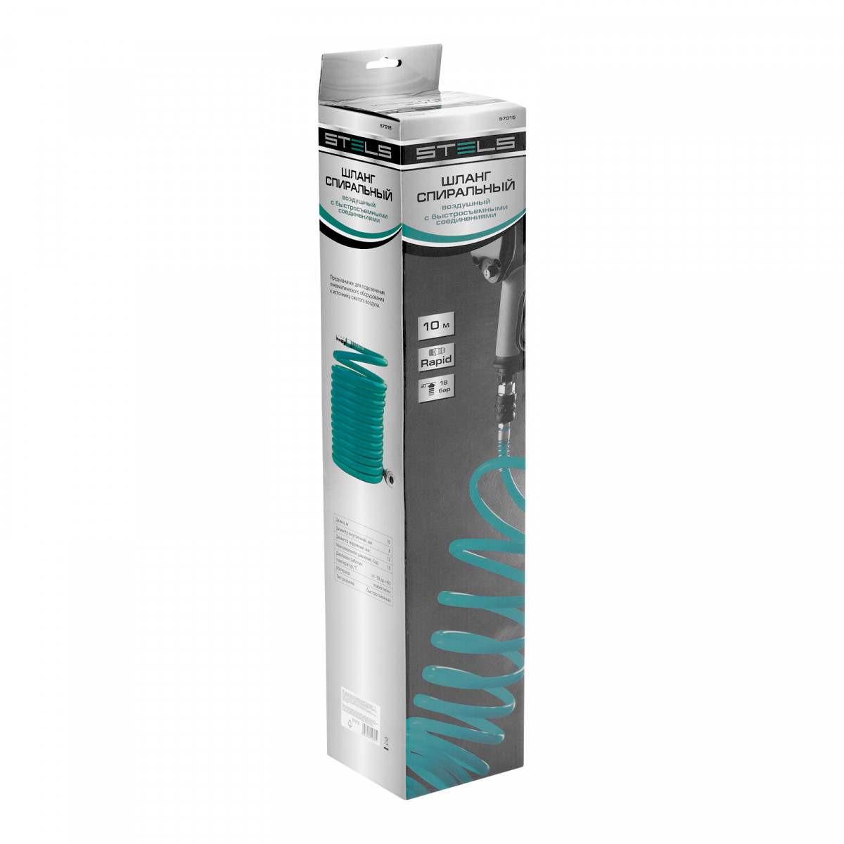 Спиральный воздушный шланг Stels 57015 диаметром 8 х 12 мм, длиной 10 м, с быстросъемными соединениями, выдерживает давление до 18 бар и предназначен для подключения пневматических инструментов к источнику сжатого воздуха. Изготовленный из легкого и устойчивого к воздействию агрессивных сред полиэтилена, шланг (рукав) не боится контактов со строительными смесями, маслом, бензином, а работа с ним не вызывает ощущение усталости. Пригодится во время строительства, ремонтно-отделочных работ, а также будет полезен в мастерской или гараже.