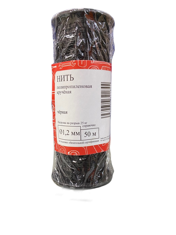 Шнур крученый полипропиленовый на катушке 1,2 мм 50 м черный КРЕПЫЖ