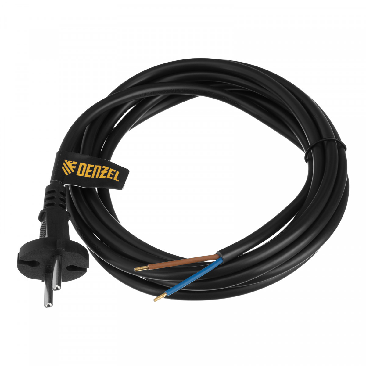 Шнур сетевой Energy Series, ПВС, 3 м, 2 x 1,5 мм, с неразборной вилкой, черный, Denzel