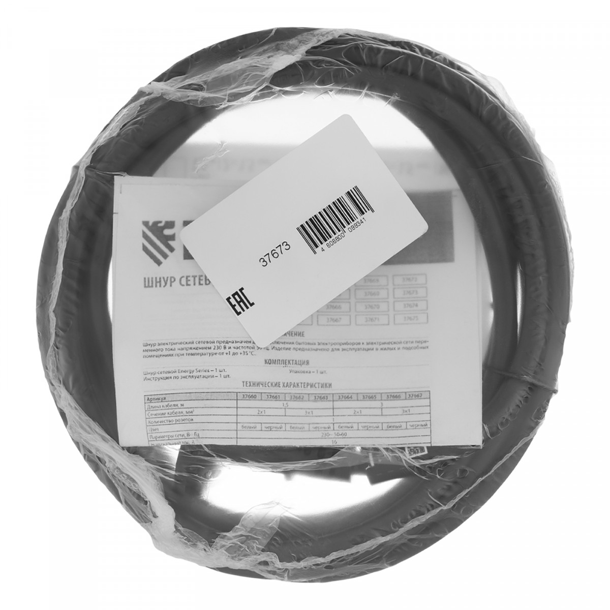 Черный сетевой шнур Denzel Energy Series 37673 с кабелем ПВС сечением 2 x 1,5 мм и длиной 3 м, с неразборной вилкой, предназначен для подключения к сети электроприборов мощностью до 3680 Вт. Для смотанного кабеля максимальная мощность потребителя составляет 1840 Вт. Шнур можно использовать для самостоятельного подключения прибора или замены вышедшего из строя провода. Сделано в России.