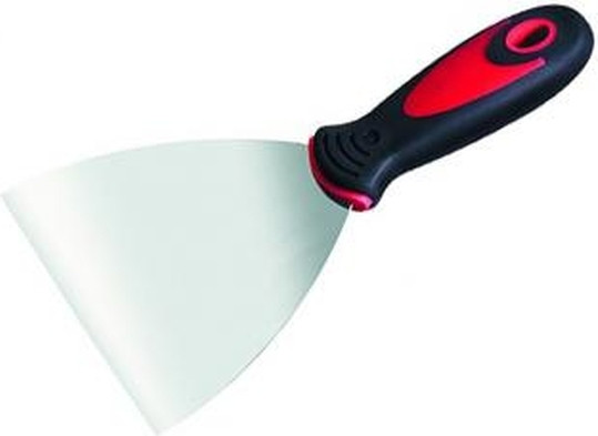 Шпатель имеет профилированное полотно из нержавеющей стали. Двухкомпонентная (пластик+резина) ручка утолщена в зоне охвата. Предназначен для нанесения, разравнивания и сглаживания шпаклевочного слоя на поверхности.