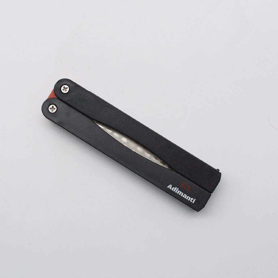 Складная точилка имеет карманный формат, и очень удобна для всевозможных путешествий, вылазок, поездок. Вы также можете при необходимости использовать её дома. У точильного приспособления две алмазные поверхности, которые имеют различный уровень зернистости. Может обрабатывать ножи различных типов.