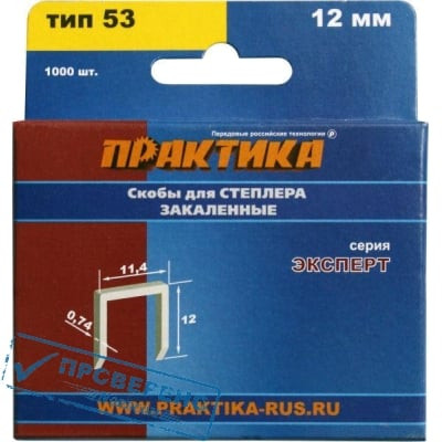 Скобы Практика для степлера серия Мастер 12 мм Тип 53 толщина 0,74 мм ширина 11,4 мм (1000 шт)