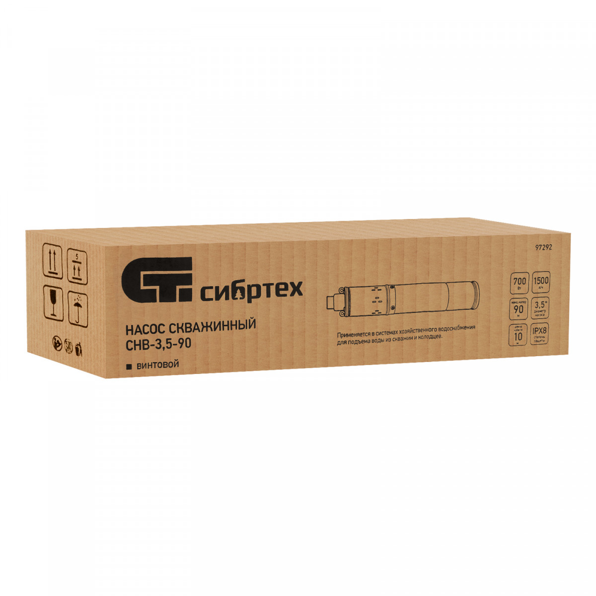 Скважинный насос СНВ-3,5-90, винтовой, диаметр 3,5", 700 Вт, 1500 л/ч, напор 90 м Сибртех