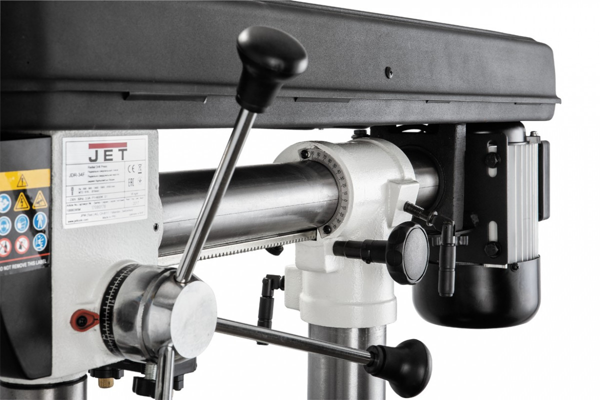 Сверлильный станок JET JDR-34 используется в бытовых целях. Мощный двигатель с выходной мощностью 350 Вт способен справиться даже с высокими нагрузками. Основное назначения станка – высверливание небольших аккуратных отверстий диаметром до 16 мм в древесине.