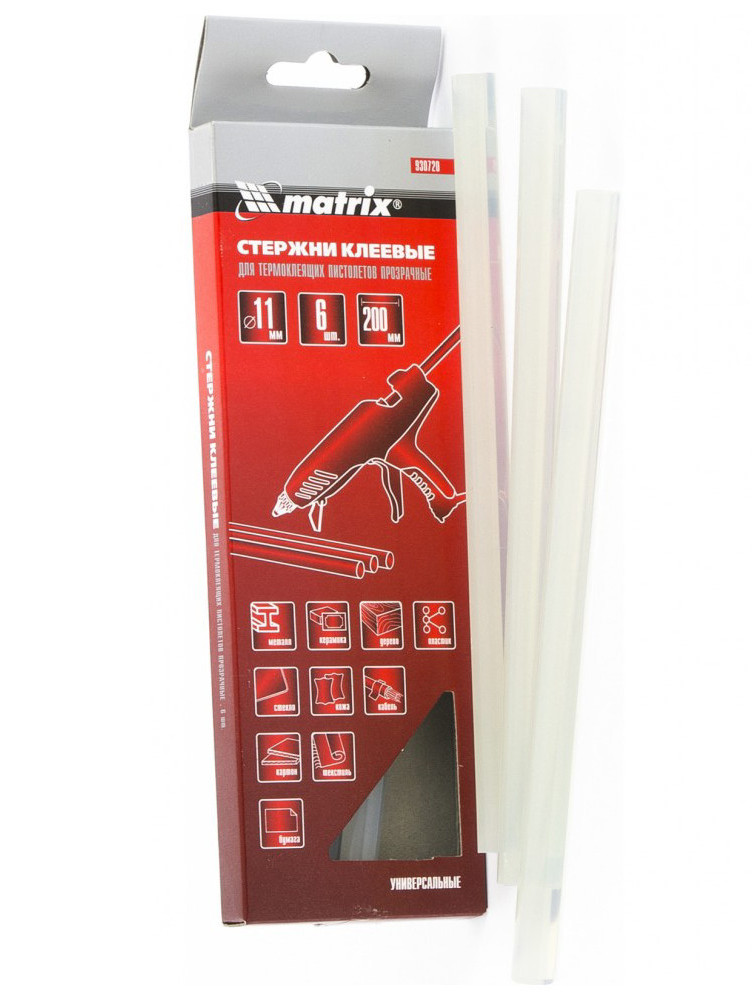 Стержни 11*200 мм клеевые для термоклеевых пистолетов, прозрачные, 6шт/упак. MATRIX