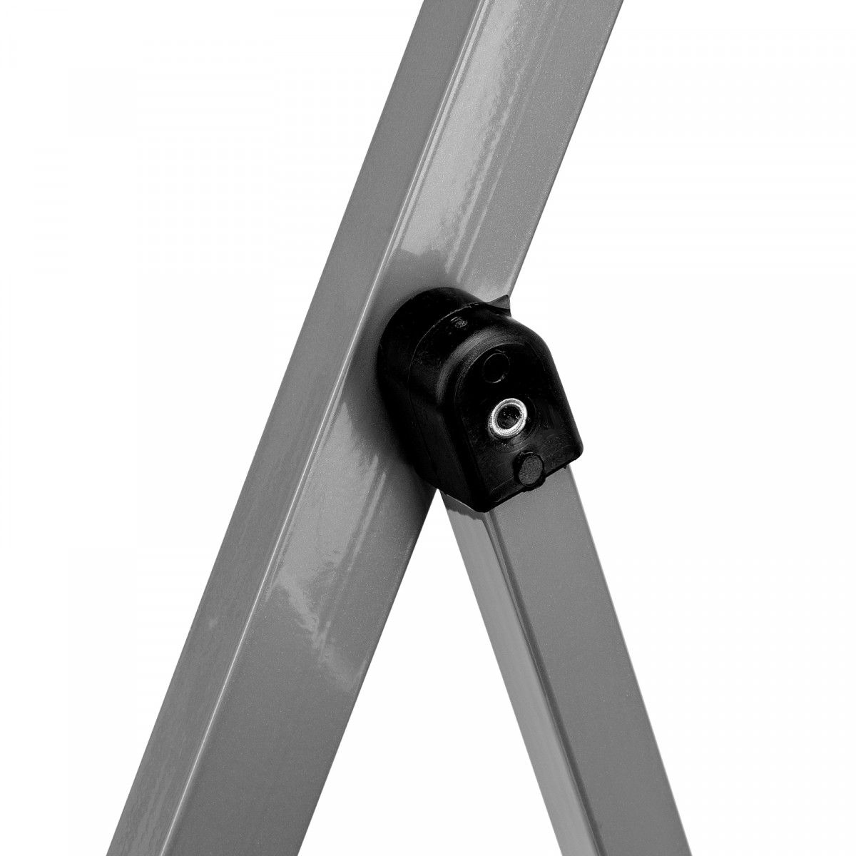• Прочность — рама и ступени изготовлены из стали, поэтому стремянка выдерживает нагрузку 120 кг.