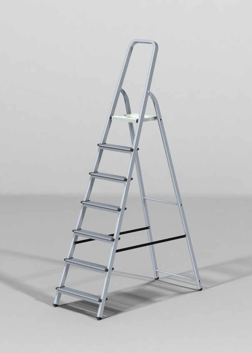 Стремянка Новая Высота 7 ступеней  предназначена для интенсивной эксплуатации. Устойчива на любой поверхности. Профилированные ступени обеспечивают уверенный подъем работника на высоту. Страховочные ремни придают конструкции жесткость и не дают стремянке сложиться. При хранении лестница не занимает много места, а благодаря небольшому весу легко транспортируется.