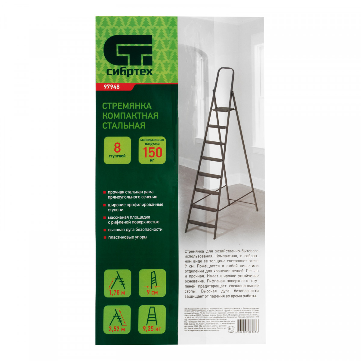 Стремянка 8 ступеней, компактная, стальная Сибртех
