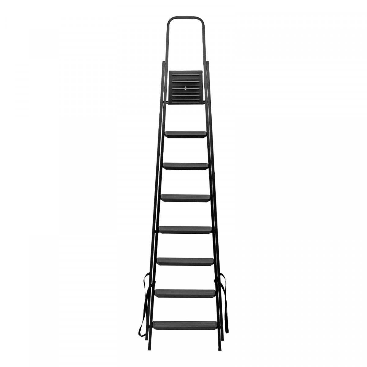 Стремянка имеет антрацитовое покрытие порошковой эмалью, защищающее от коррозии.