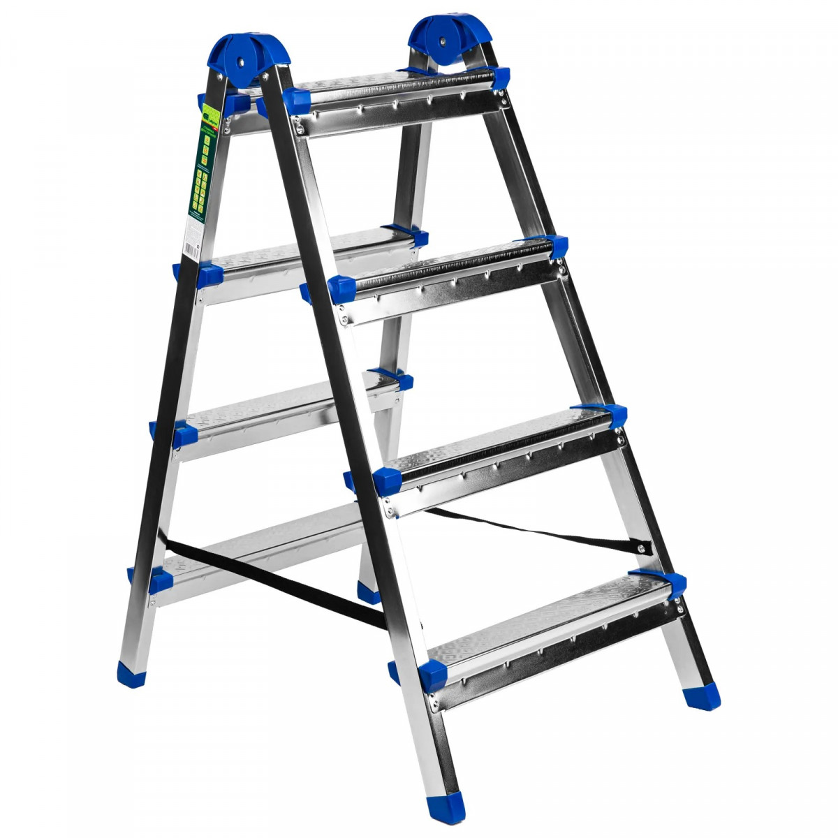 Стремянка двухсторонняя 4 ст., сталь профиль, стальные ступени, Россия// Сибртех