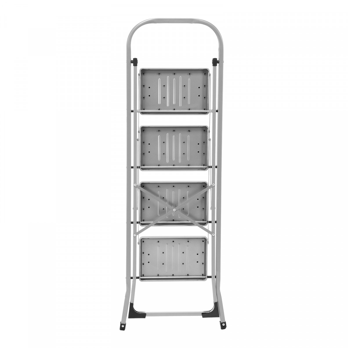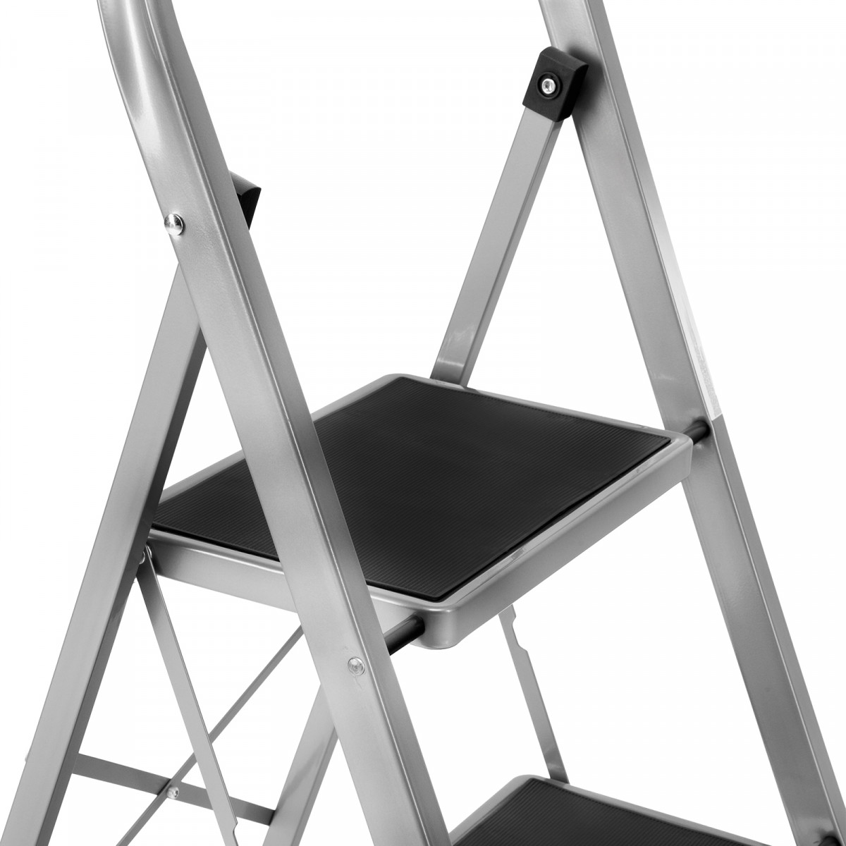 • Удобное хранение — за счет толщины в сложенном виде 4,5 см стремянка не занимает много места.
