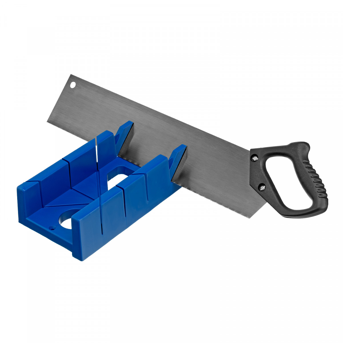 Стусло пластиковое, синее, 4 угла для запила, пила 450 мм Сибртех