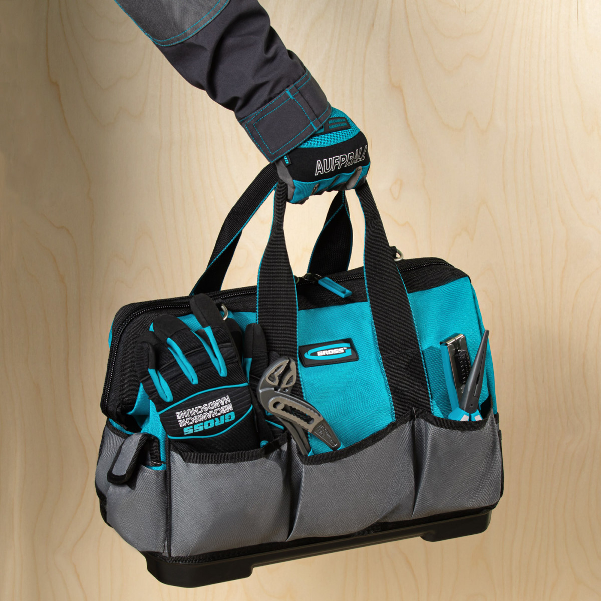 Сумка для инструмента Gross Handwerker 90272 размером 400 х 225 х 310 мм, с 26 карманами, пластиковым дном и наплечным ремнем, будет полезна слесарям, монтажникам, электрикам, а также автомобилистам. В основном отделении, внутренних и внешних карманах поместятся все необходимые инструменты.