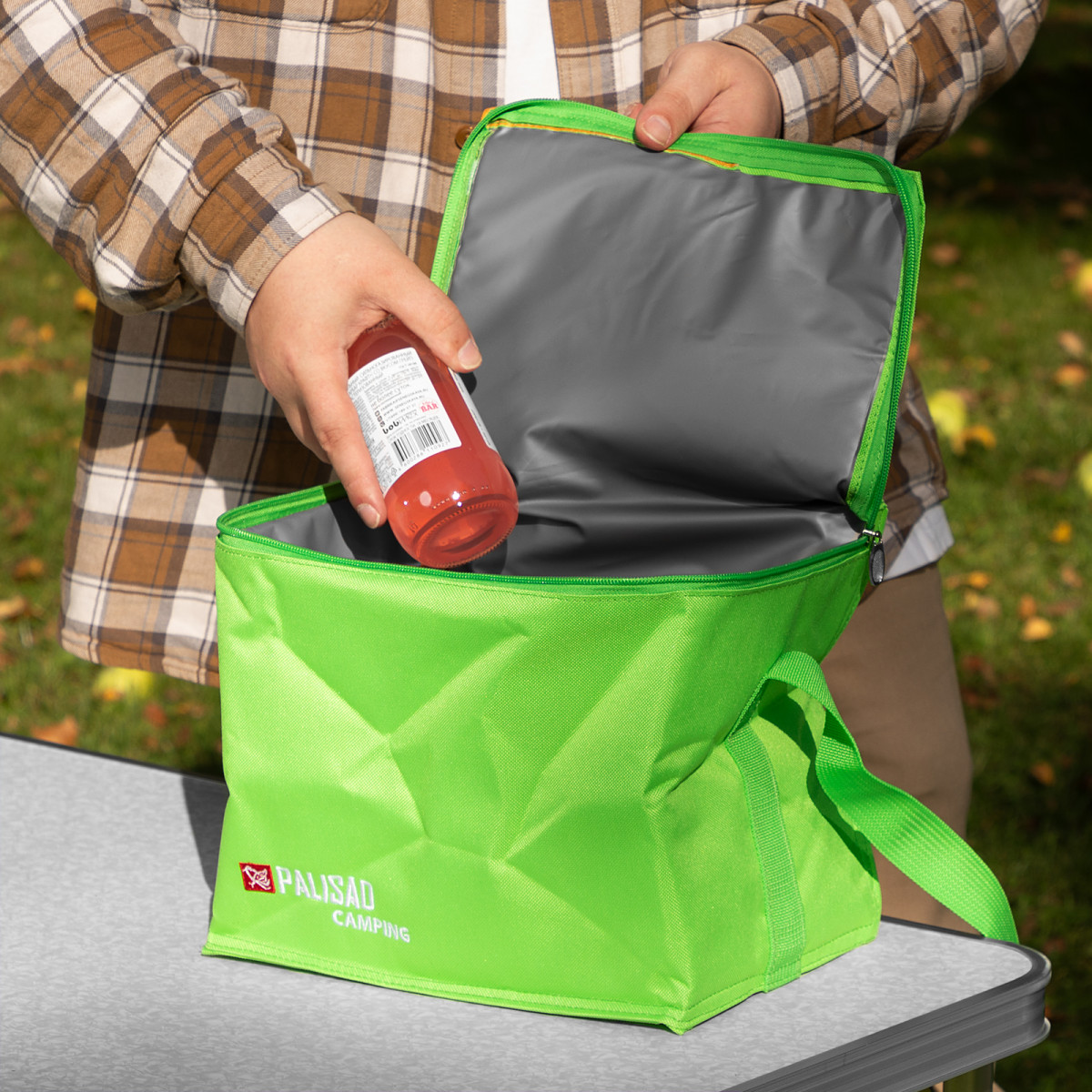 Сумка-холодильник Palisad Camping 69598 размером 28 х 20 х 24 см сохранит продукты и напитки прохладными в жару. Для этого в комплекте имеется пакет с охлаждающим гелем. Дополнительно можно приобрести аккумуляторы холода Palisad 69601. Теплоизоляционный слой из высококачественных материалов PEVA, EPE эффективно поддерживает температуру внутри сумки. Изделие пригодится для перевозки продуктов и напитков, также его можно взять с собой на пикник.