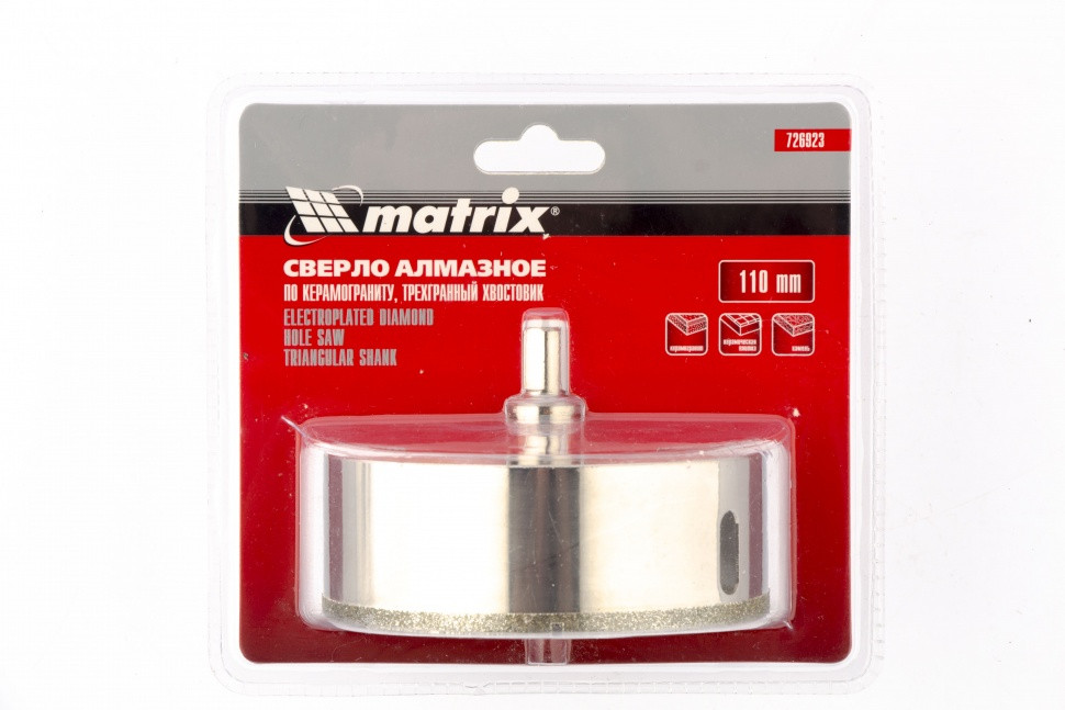 Сверло алмазное по керамограниту, 110 х 67 мм, трехгранный хвостовик Matrix