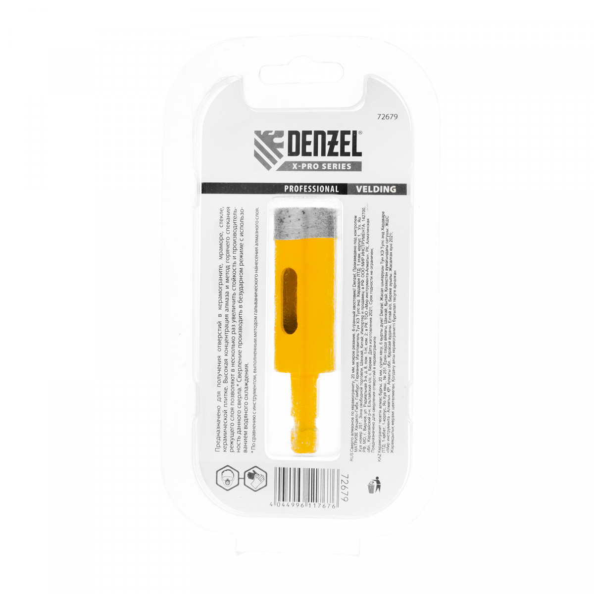 Алмазное сверло Denzel 72679 с трехгранным хвостовиком, для «мокрой» резки, — режущий инструмент для получения точных отверстий диаметром 20 мм. Подходит для работ по стеклу, керамике, а также керамограниту и мрамору. Используется в качестве оснастки для дрелей и шуруповертов. Сверление с применением водяного охлаждения позволит избежать перегрева сверла и продлить срок его службы. Использование кондуктора 72830 препятствует смещению коронки и облегчает засверливание. Оснастка предназначена для профессионального использования.
