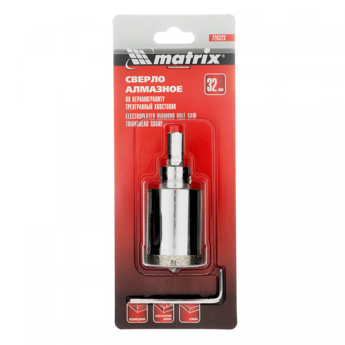 Сверло алмазное по керамограниту, 32 х 67 мм, трехгранный хвостовик Matrix