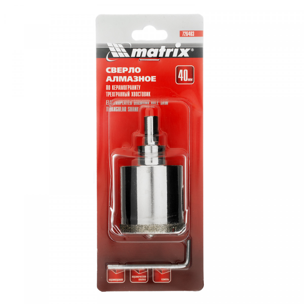 Сверло алмазное по керамограниту, 40 х 67 мм, трехгранный хвостовик Matrix