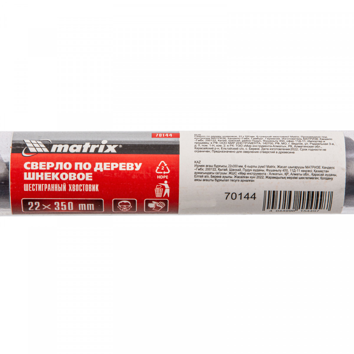 Сверло по дереву шнековое, 22 х 350 мм, шестигранный хвостовик Matrix