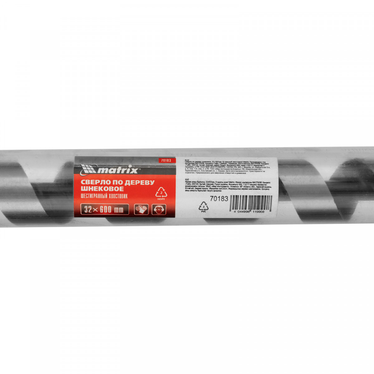 Сверло по дереву шнековое, 32 х 600 мм, шестигранный хвостовик Matrix