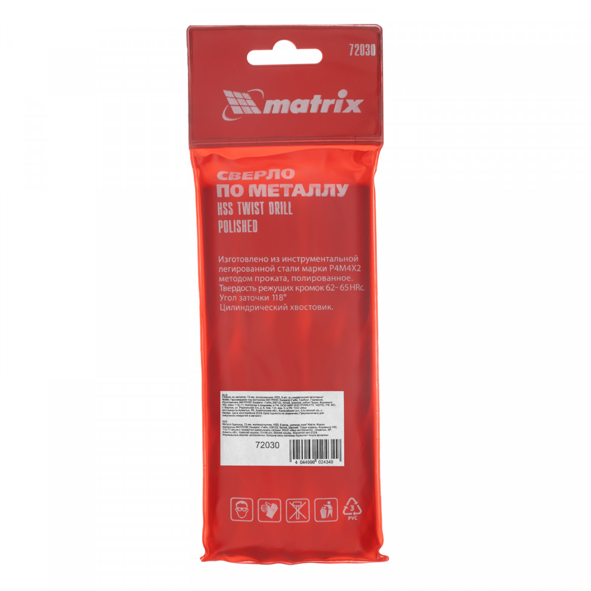 Сверло по металлу, 13 мм, полированное, HSS, 5 шт, цилиндрический хвостовик Matrix
