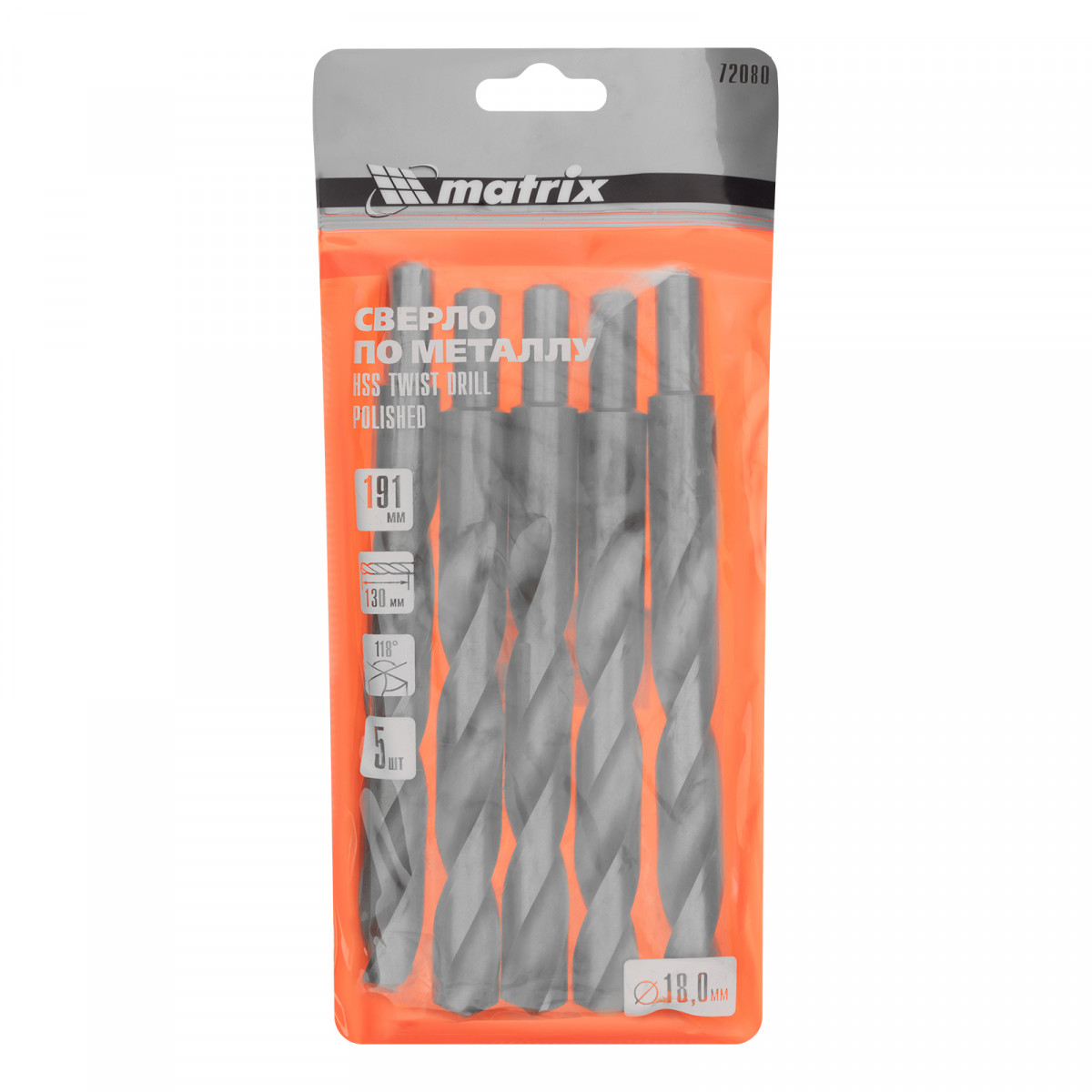 Сверло по металлу, 18 мм, полированное, HSS, 5 шт, цилиндрический хвостовик Matrix