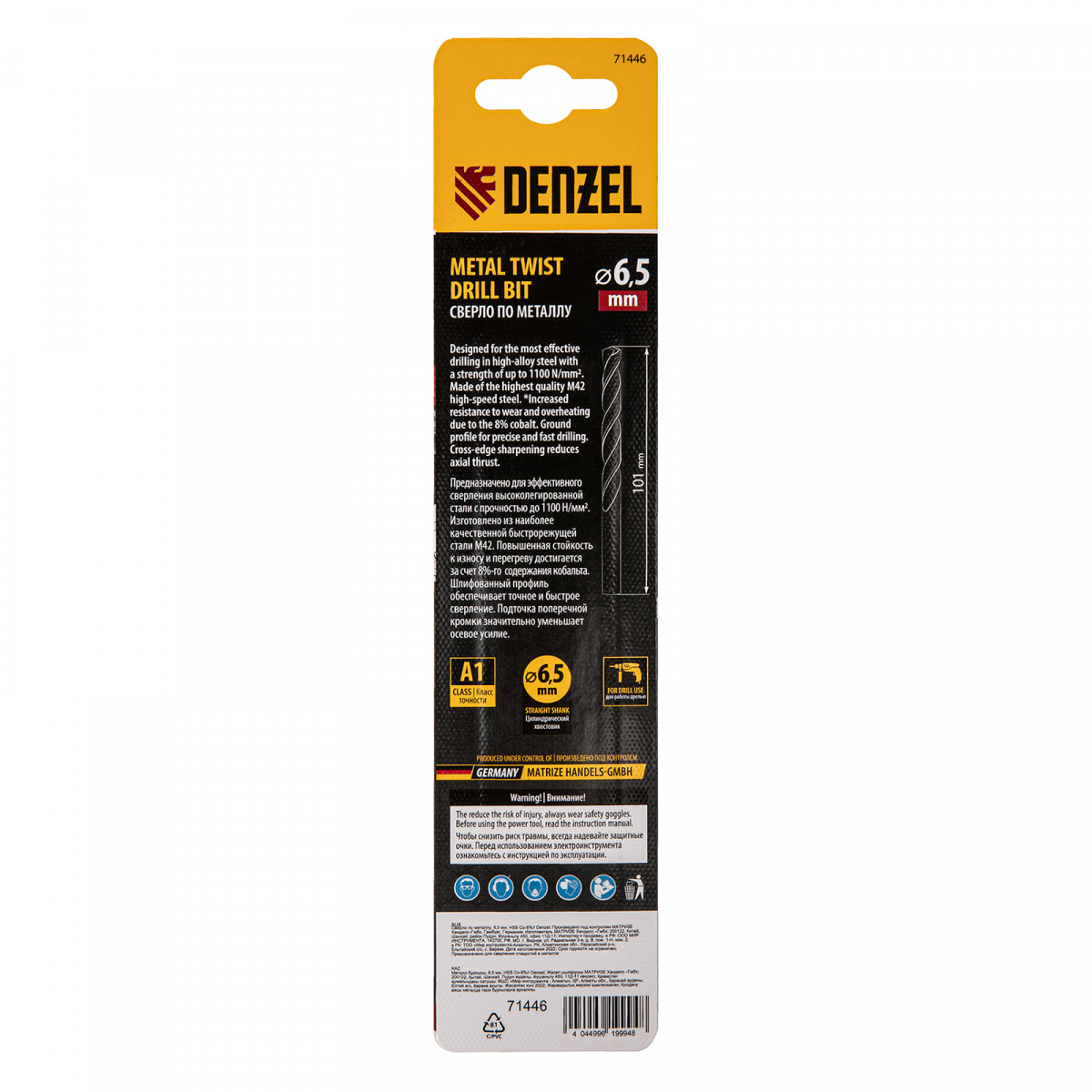 Сверло по металлу, 6,5 мм, HSS Co-8%// Denzel