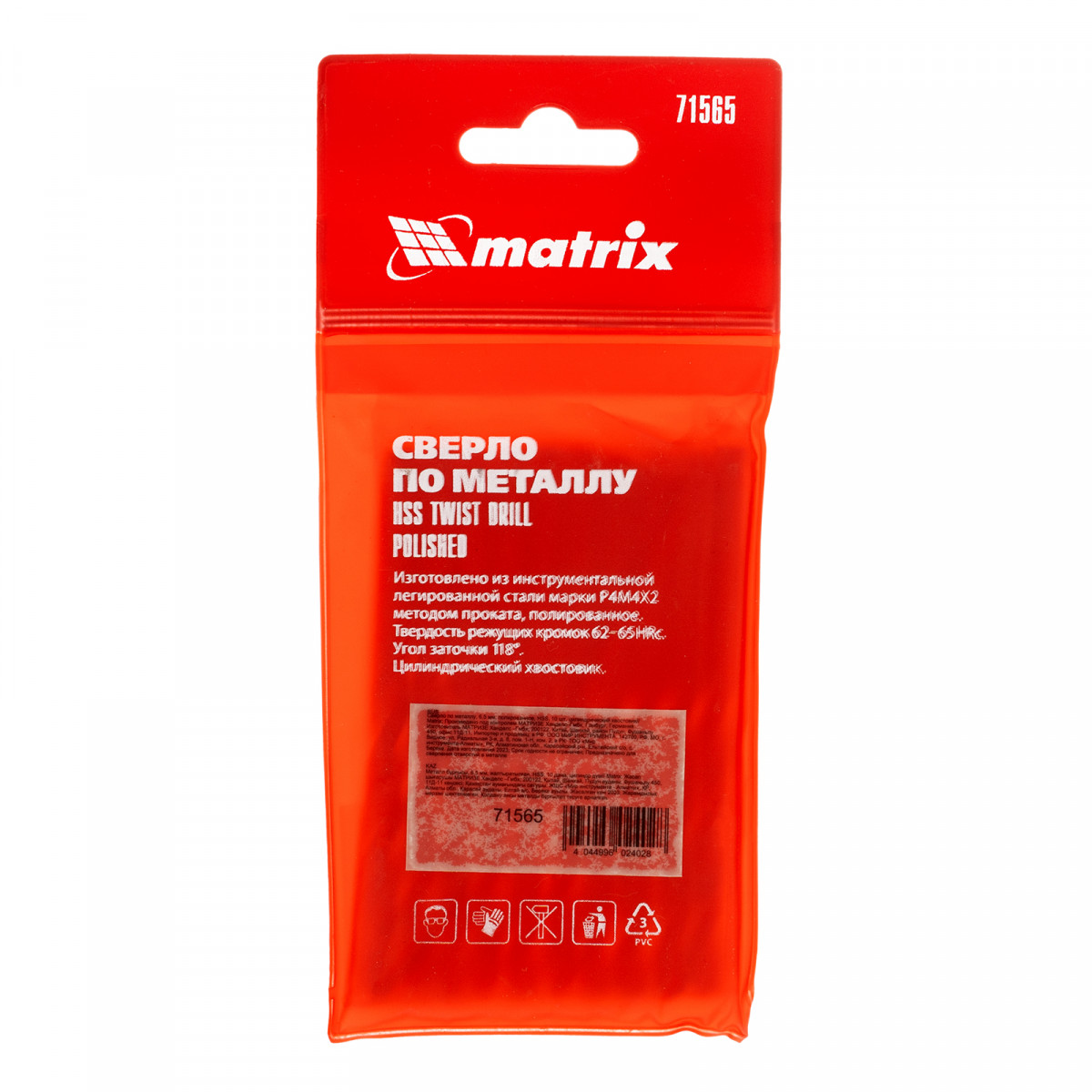 Полированное сверло по металлу Matrix 71565 из стали HSS, с цилиндрическим хвостовиком, 10 шт. в упаковке, используется для получения отверстий диаметром 6,5 мм. Угол заточки составляет 118 градусов, поэтому сверло оптимально для работы с черными металлами, сталью, чугуном и твердой бронзой.
