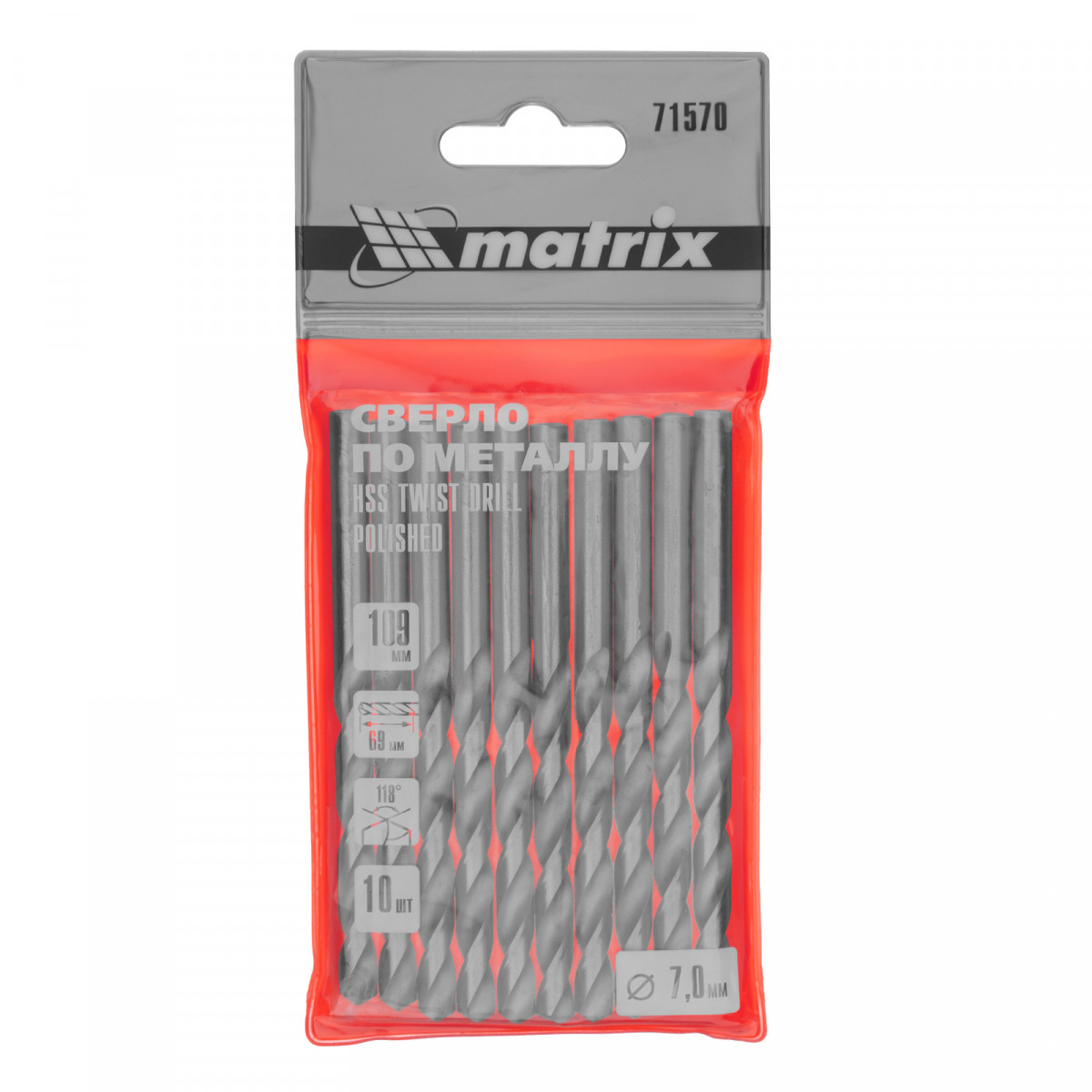 Полированное сверло по металлу Matrix 71570 из стали HSS, с цилиндрическим хвостовиком, 10 шт. в упаковке, используется для получения отверстий диаметром 7,0 мм. Угол заточки составляет 118 градусов, поэтому сверло оптимально для работы с черными металлами, сталью, чугуном и твердой бронзой.