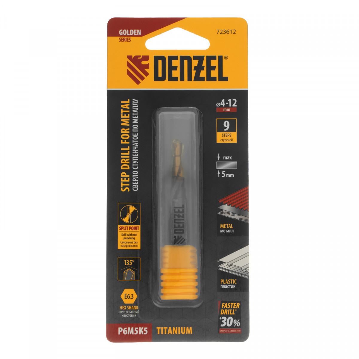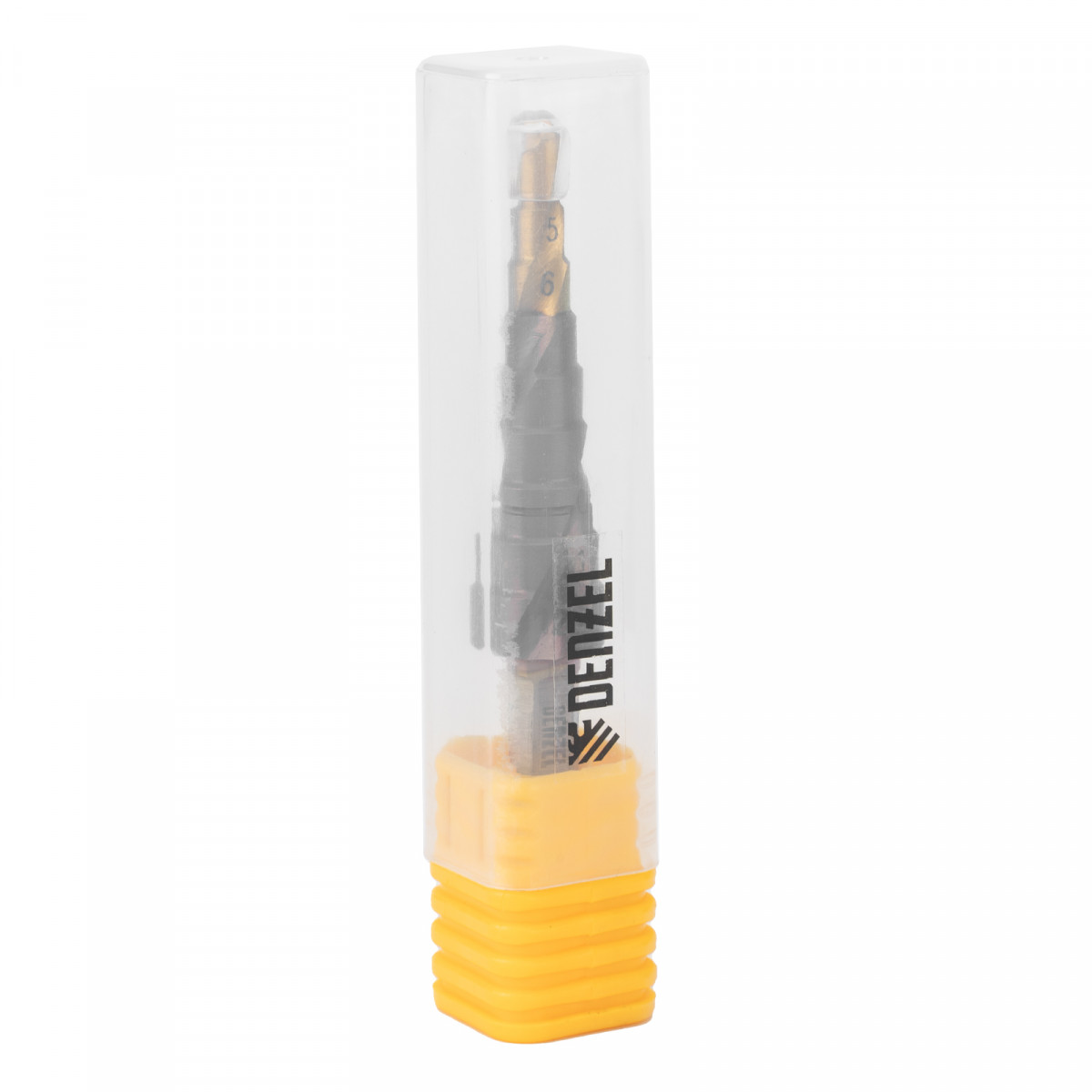 Сверло ступенчатое 4-5-6-7-8-9-10-11-12 мм, Р6М5К5, 6-гр. хвостовик Denzel