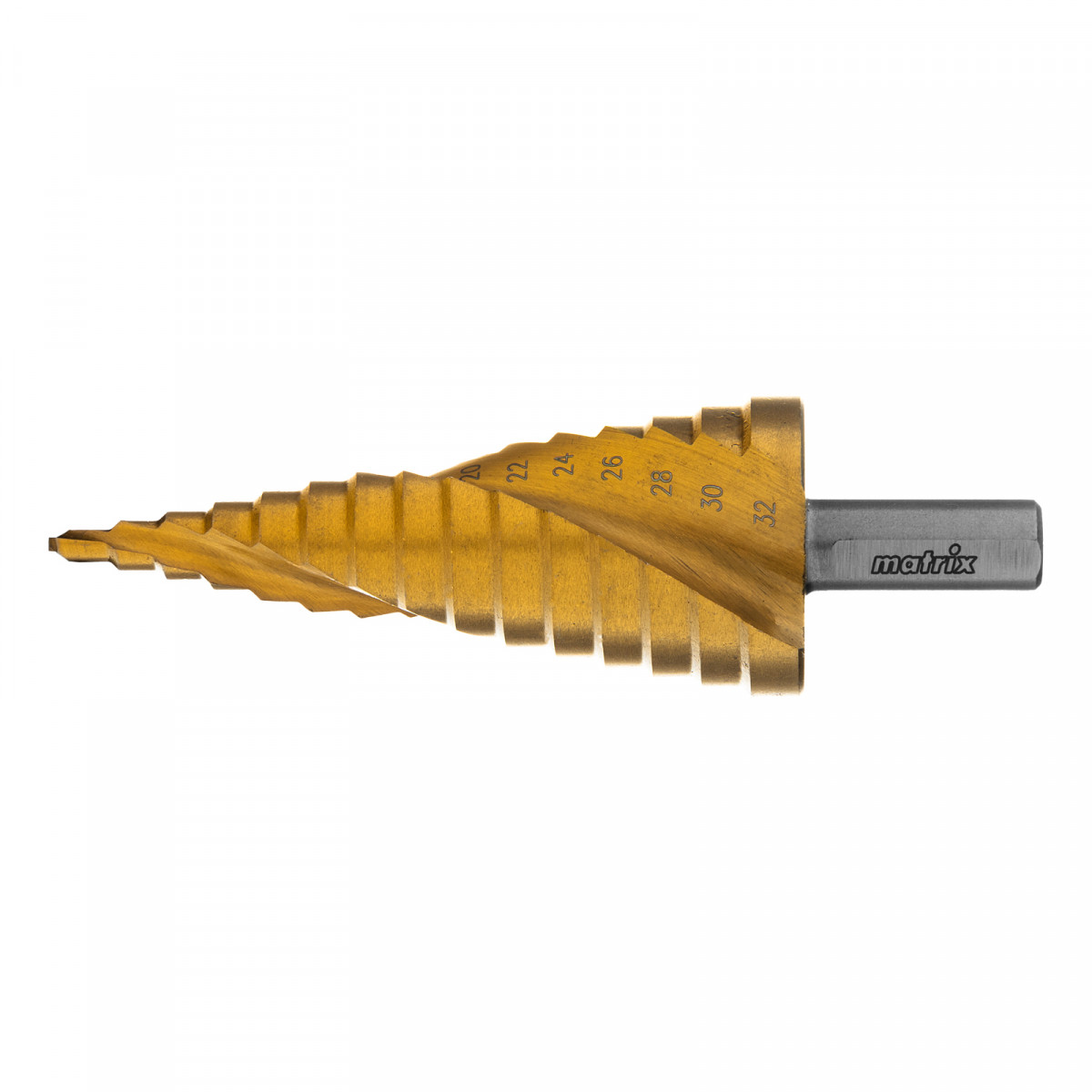 Сверло ступенчатое, 4-6-8-10-12-14-16-18-20-22-24-26-28-30-32 мм, HSS, спиральный профиль, трехгранный хвостовик Matrix