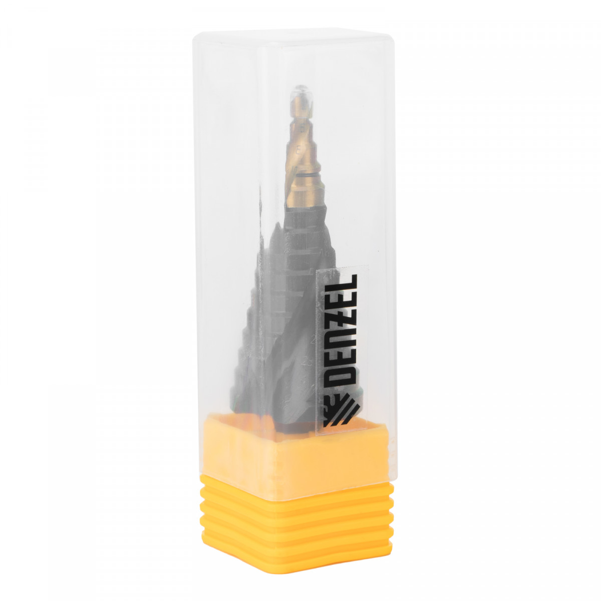 Сверло ступенчатое, 4-6-8-10-12-14-16-18-20-22-24-26-28-30-32 мм, Р6М5, 6-гр. хвостовик Denzel