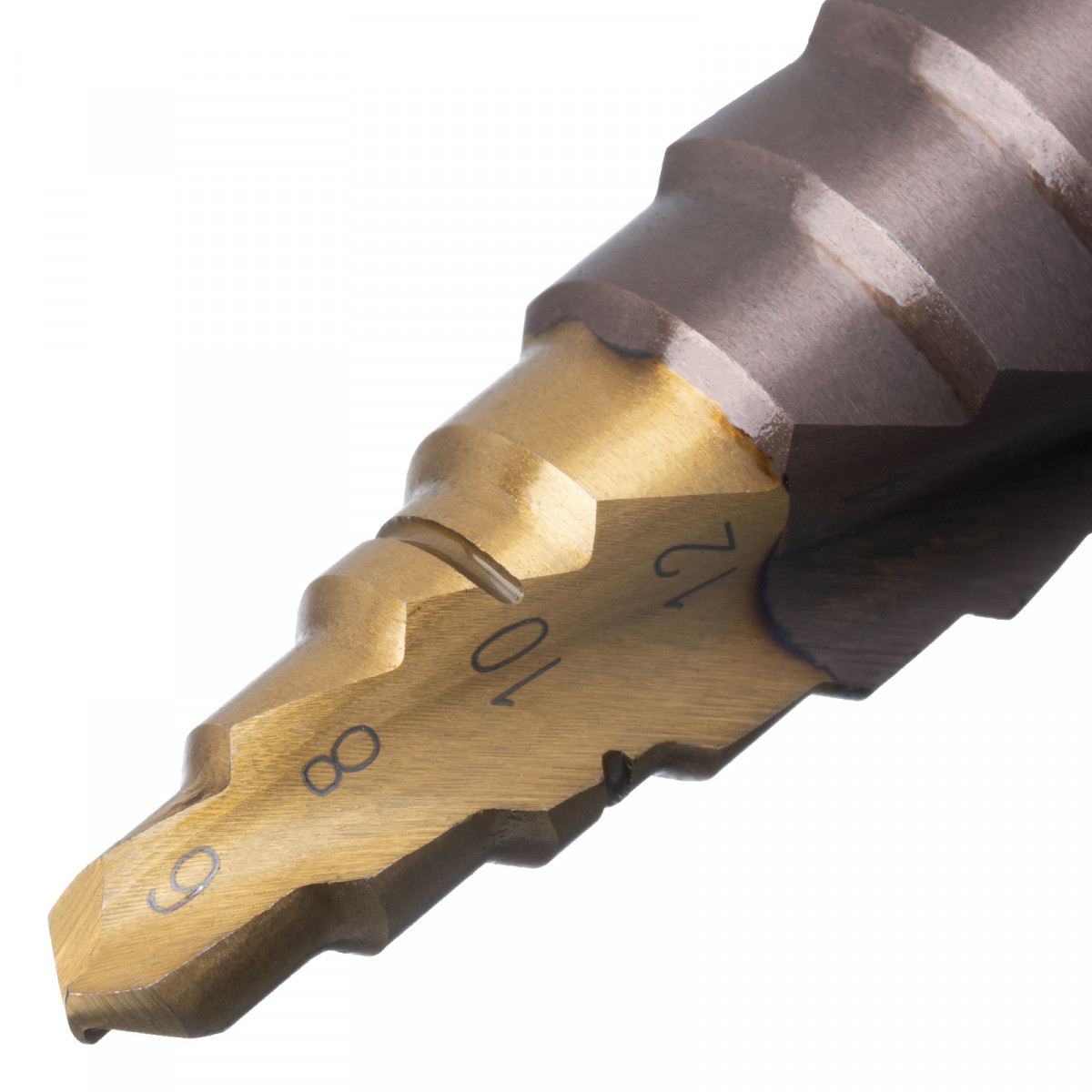 Сверло ступенчатое, 6-8-10-12-14-16-18-20-22-24-26-28-30мм, Р6М5К5, 6-гр. хвостовик Denzel