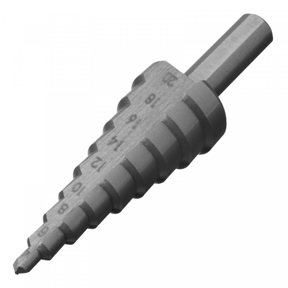 Ступенчатое сверло Сибртех 723012 предназначено для сверления отверстий диаметром от 4 до 20 мм в сталях, цветных металлах и пластике. Избавляет от необходимости иметь при себе целый набор традиционных сверл. Позволяет получать отверстия с ровными краями и уже снятой фаской под гайку или болт. Сверло пригодится дома и в мастерской.