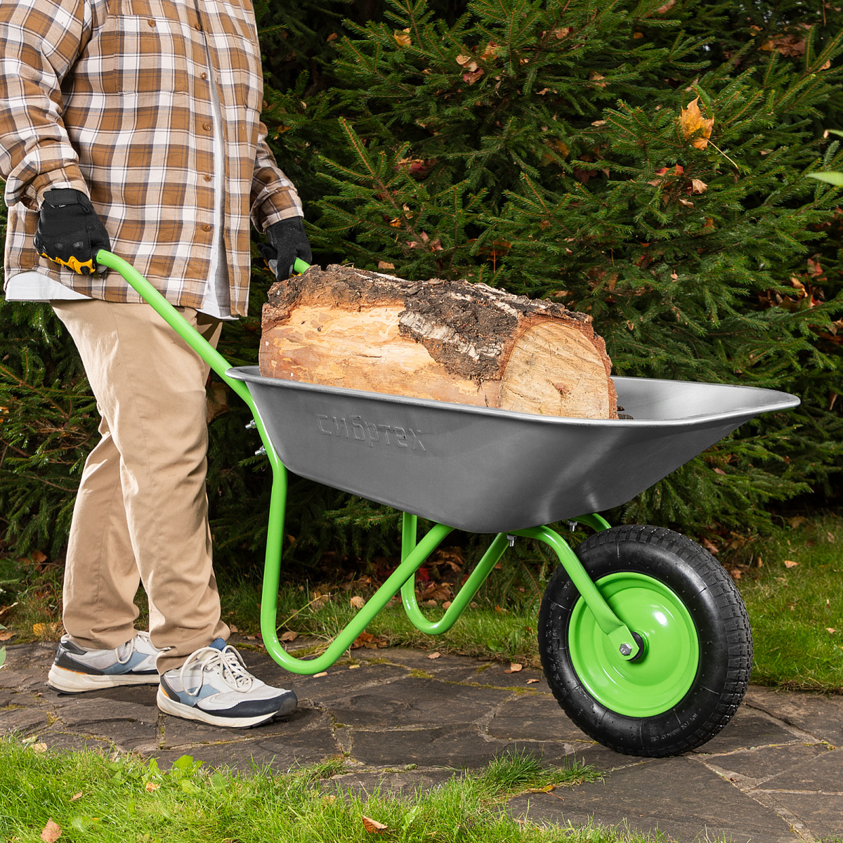 Садовая облегченная тачка Сибртех 689615 с кузовом объемом 65 л служит для транспортировки легких грузов во время садовых и сельскохозяйственных работ. С ее помощью можно привести в порядок территорию и убрать листья, собрать урожай и выполнить другие работы на загородном участке.