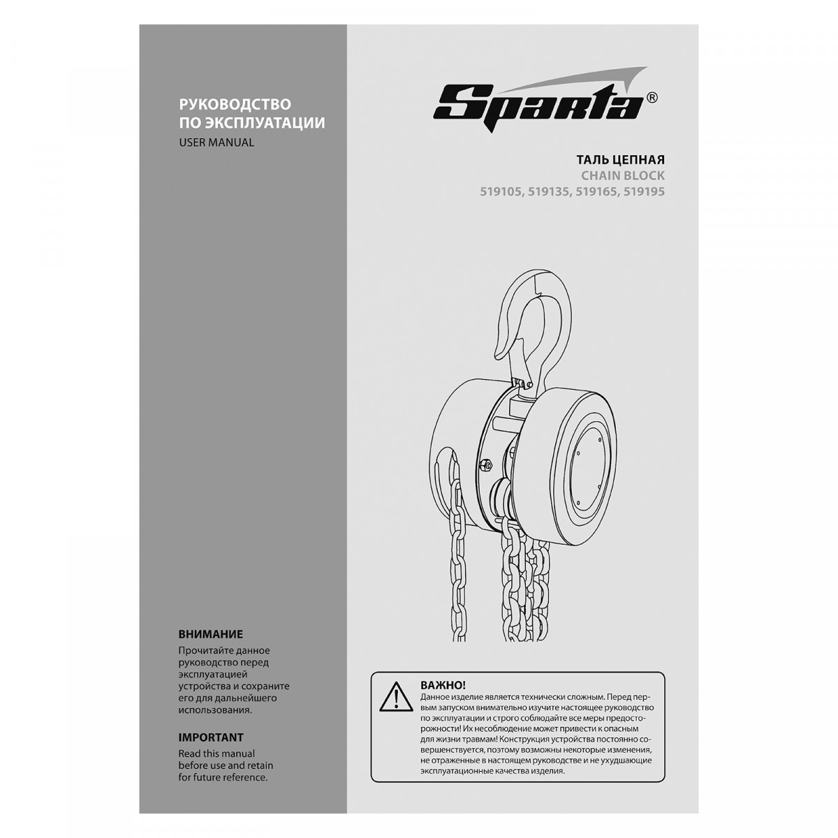 Таль цепная, 1 т, H подъема 2.5 м, расстояние между крюками 300 мм Sparta