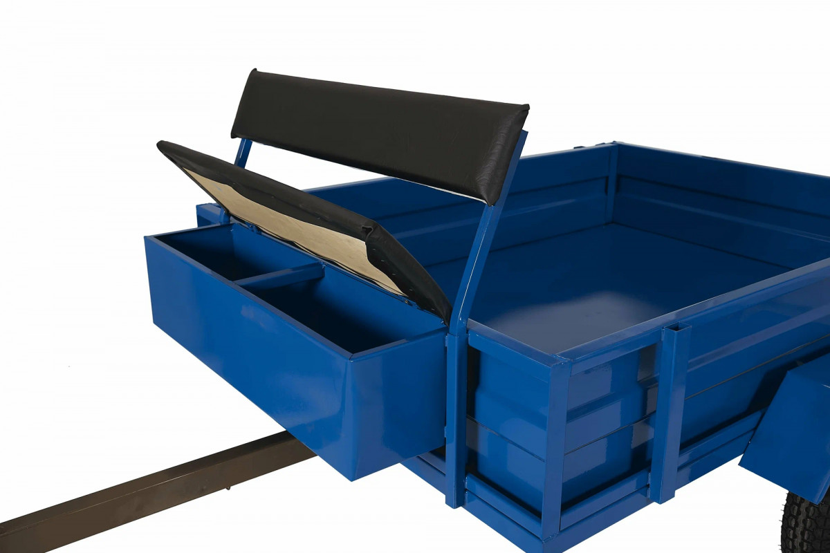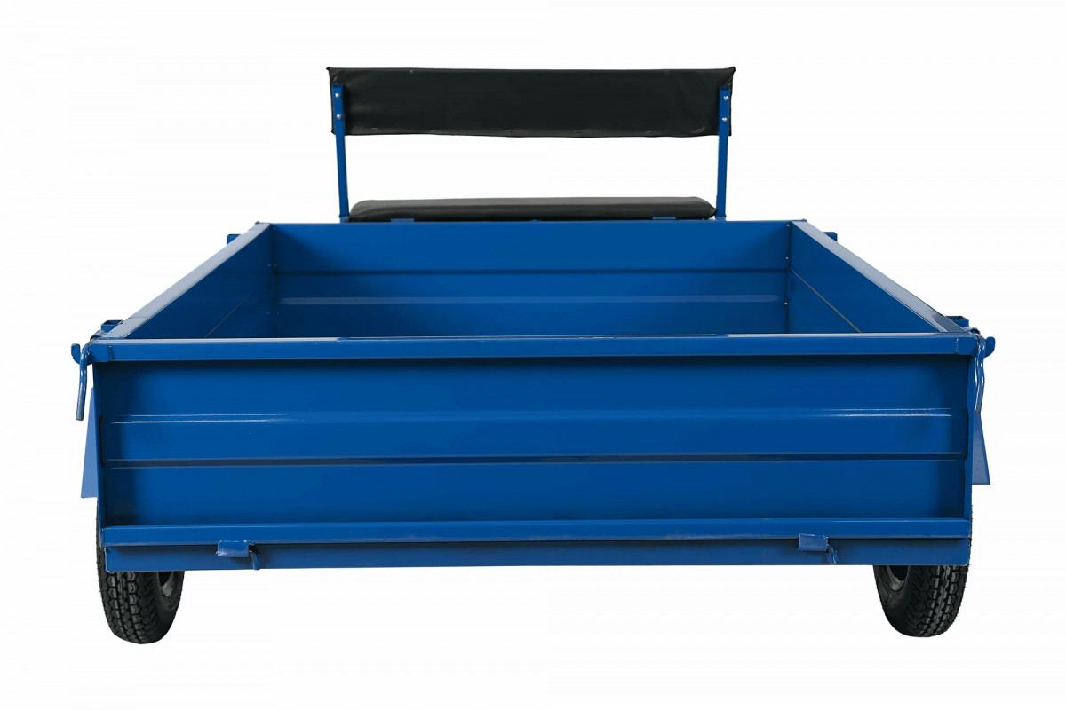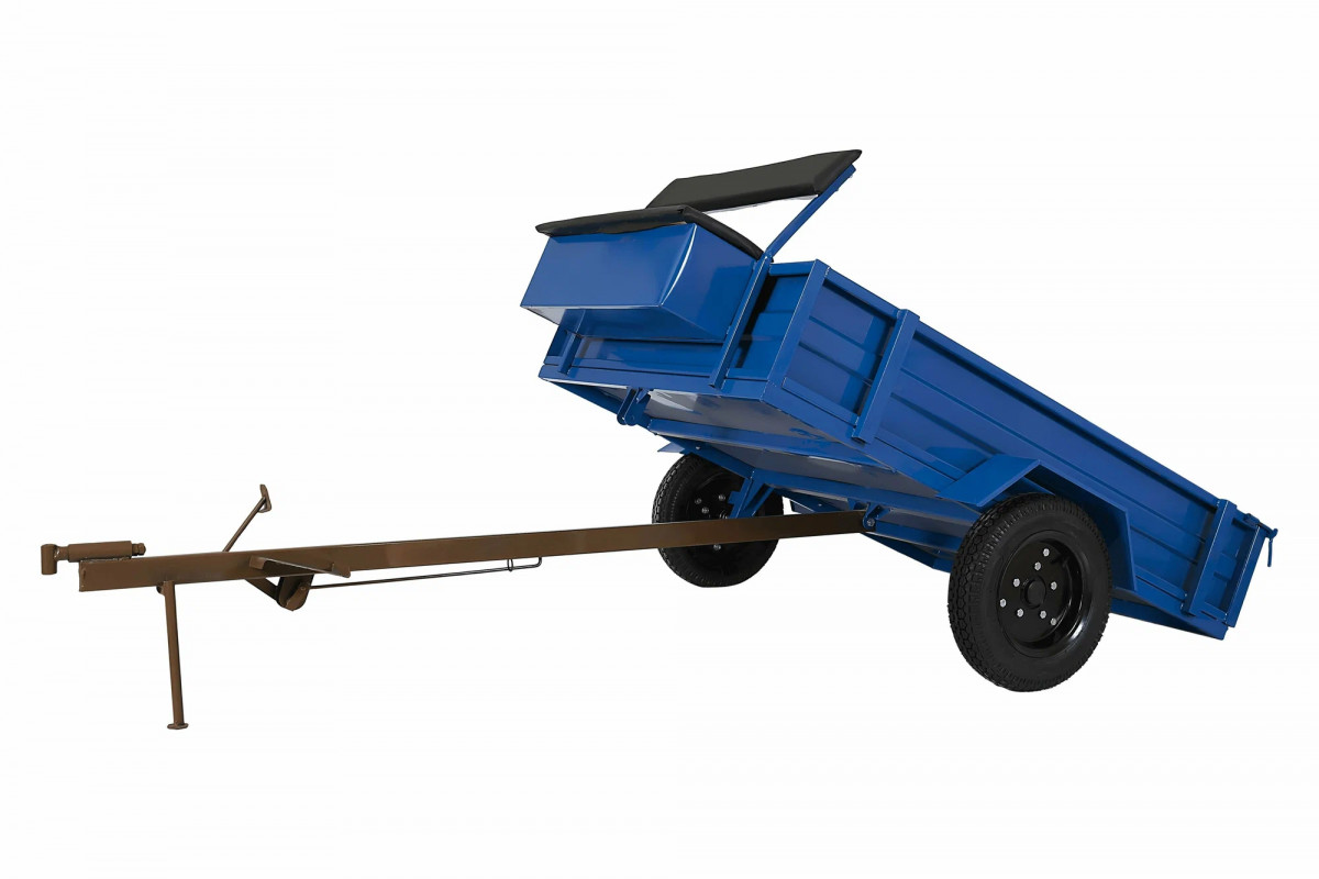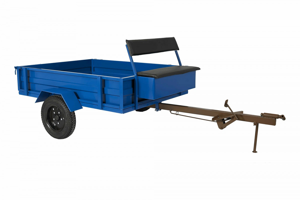 Тележка прицепная ТМ-500/2 (2х местная) к мотоблокам мощностью не менее 3..5 кВт, предназначена для перевозки различных сельскохозяйственных, строительных материалов и других грузов в приусадебных хозяйствах, в садах и огородах коллективного и индивидуального пользования, на животноводческих фермах, в теплицах и коммунальном хозяйстве. Тележка используется в агрегате с мотоблоками: КАСКАД, МБ-1Д -Ока, МБ-1Д2-Ока, МБ-2К-Нева, АГРО, УРАЛ, УРАЛ-3. и др. Технические характеристики ТМ-500/2 Грузоподъемность, кг, не более 500 Рабочая скорость движения, км/ч, не более 10 Габаритные размеры, не более (длина, ширина, высота) 2950*1320*900 Размеры кузова внутренние, не более (длина, ширина, высота) 1700*1180*275 Размер кузова при горизонтальном положении бортов, не менее (длина, ширина, высота) - 2060*1860*270 Дорожный просвет, мм, не менее 520 Колея колеса, мм 1100 Угол наклона кузова, градус, не менее - 40 Шины 5.00-10 Давление в шинах, мПа (кгс/кв.св) 0.2(2) Масса, кг 130 Разгрузка кузова, направление- назад Характ