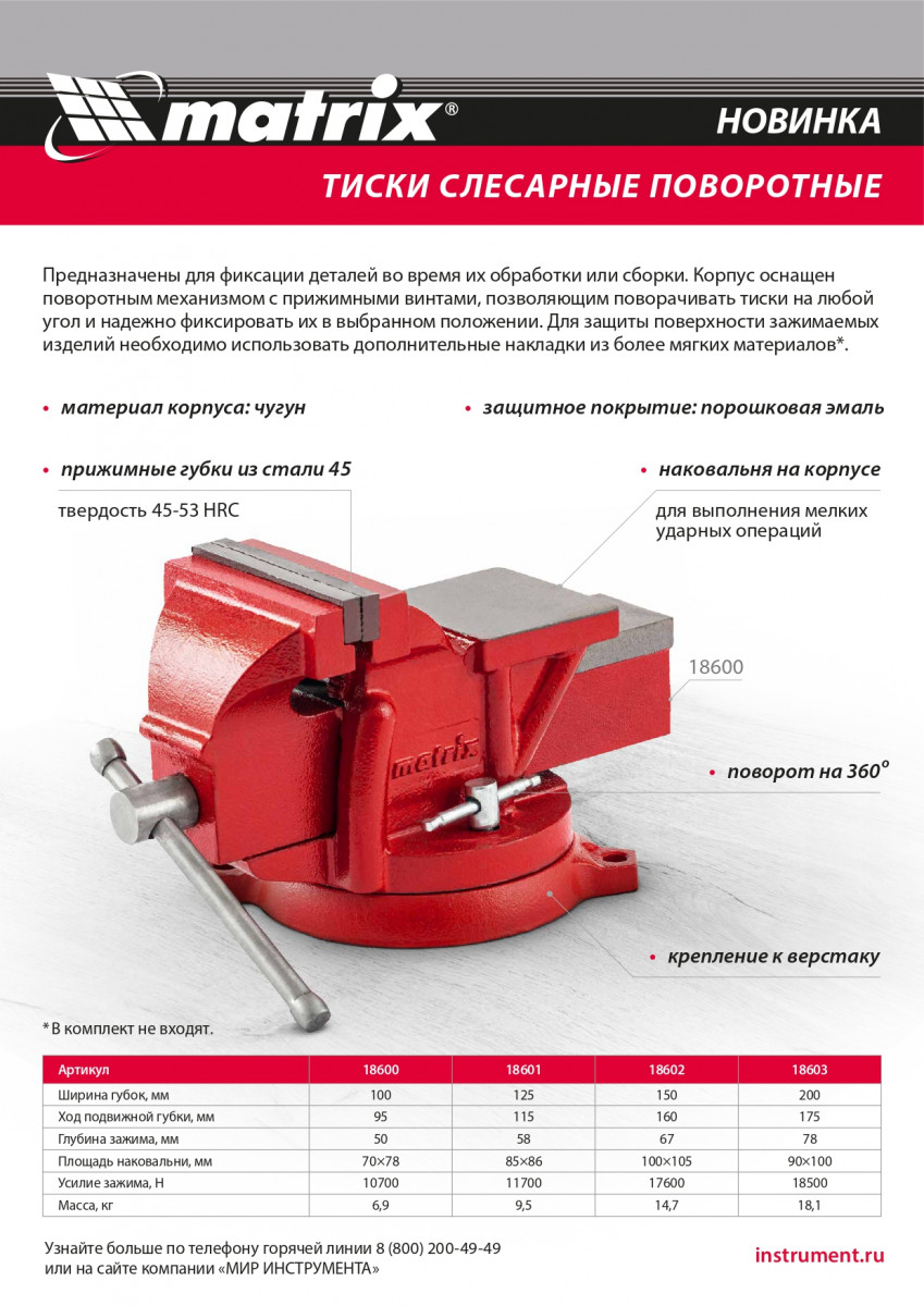 Прочный корпус из чугуна обеспечивает высокую надежность и долгий срок службы тисков Matrix.