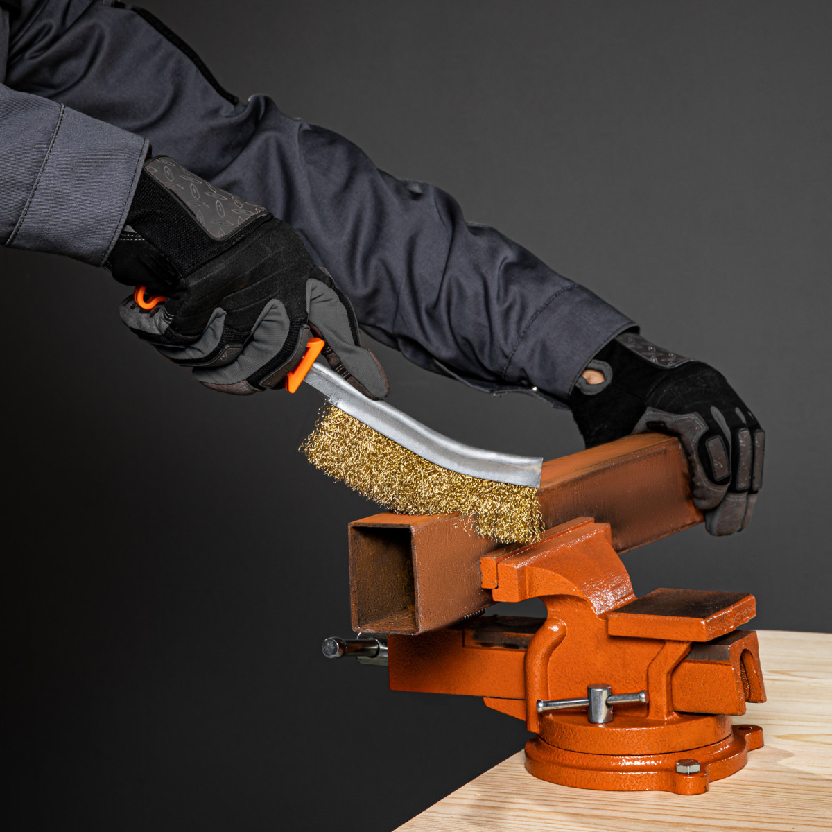• Корпус тисков выполнен из чугуна, а губки — из стали, благодаря чему достигается высокая прочность инструмента.